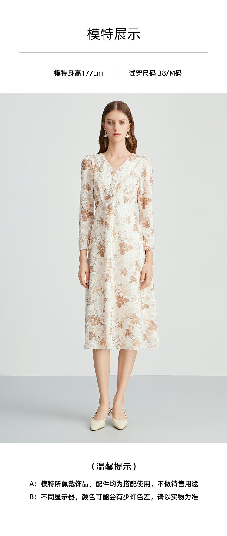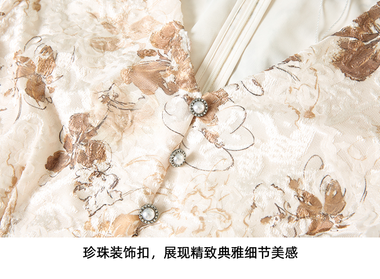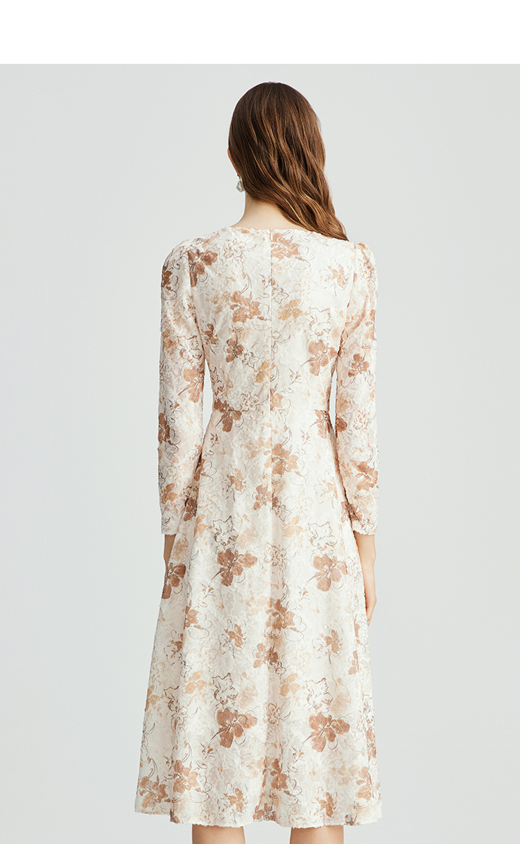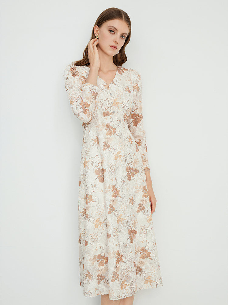 EITIE爱特爱法式复古秋日氛围感印花肌理感V领连衣裙秋季新款C2407426