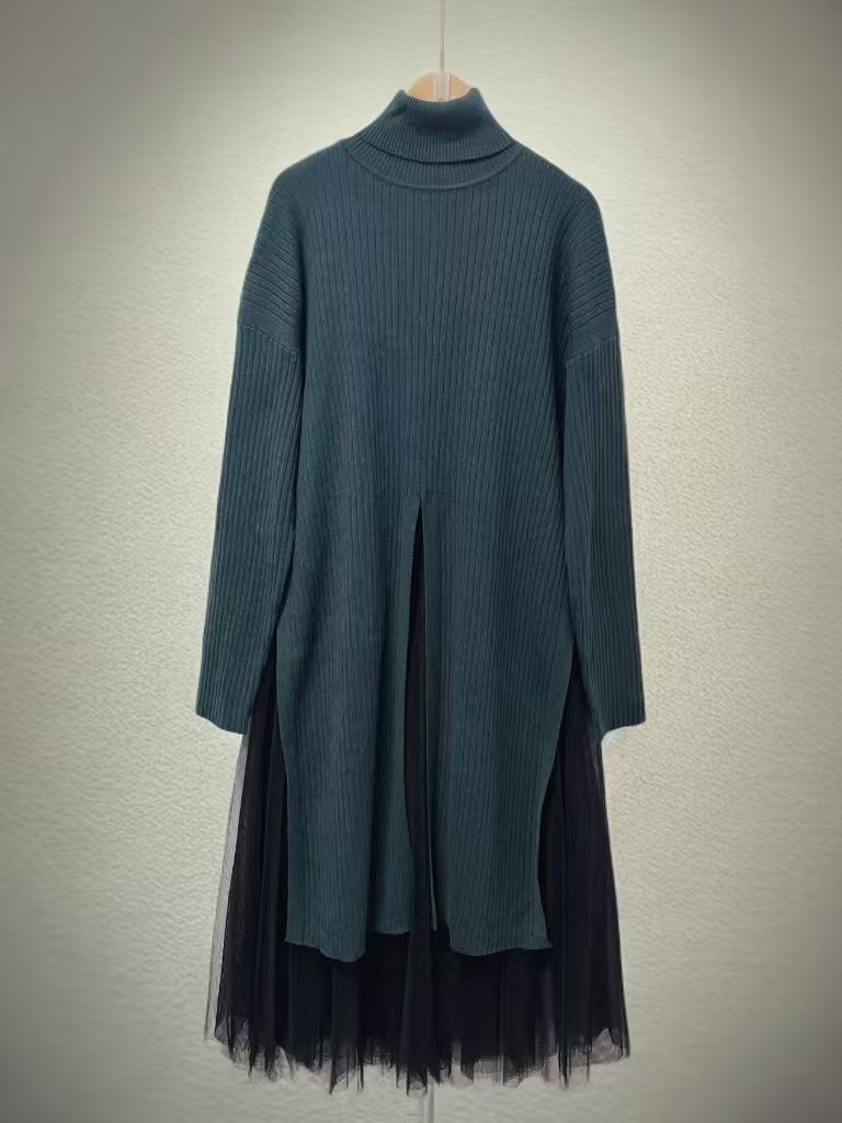 【孤品捡漏】G162墨绿开叉设计针织毛衣(可搭配纱裙穿着)-喜出