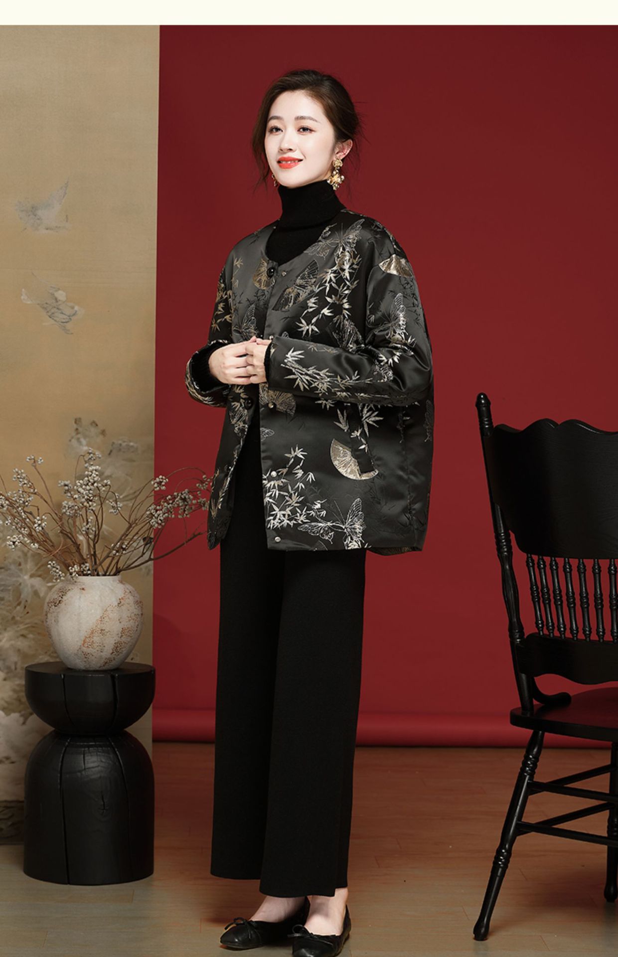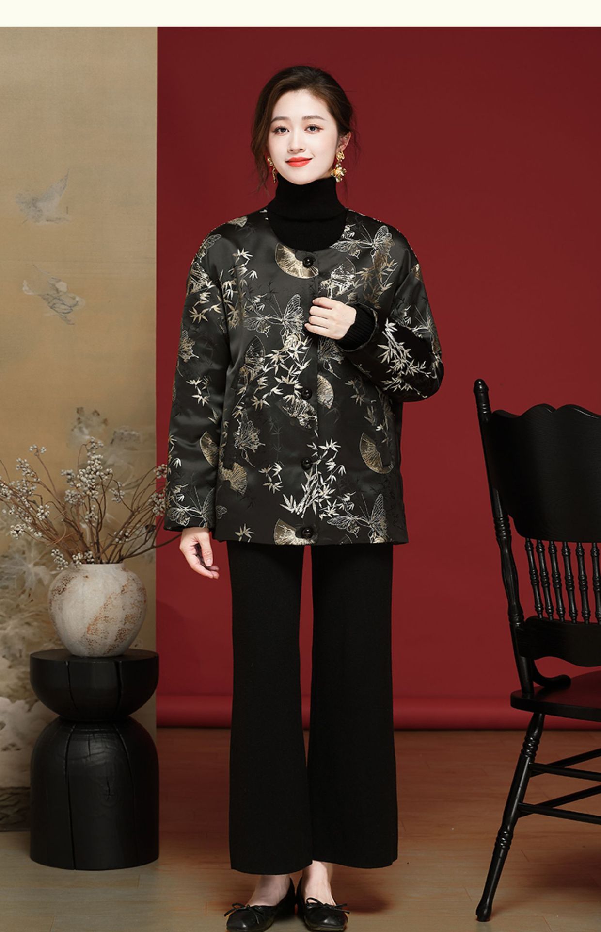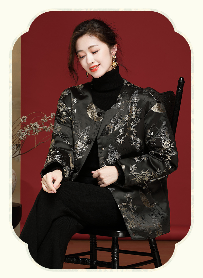 新中式中国风羽绒服织锦缎提花百搭款OY24388