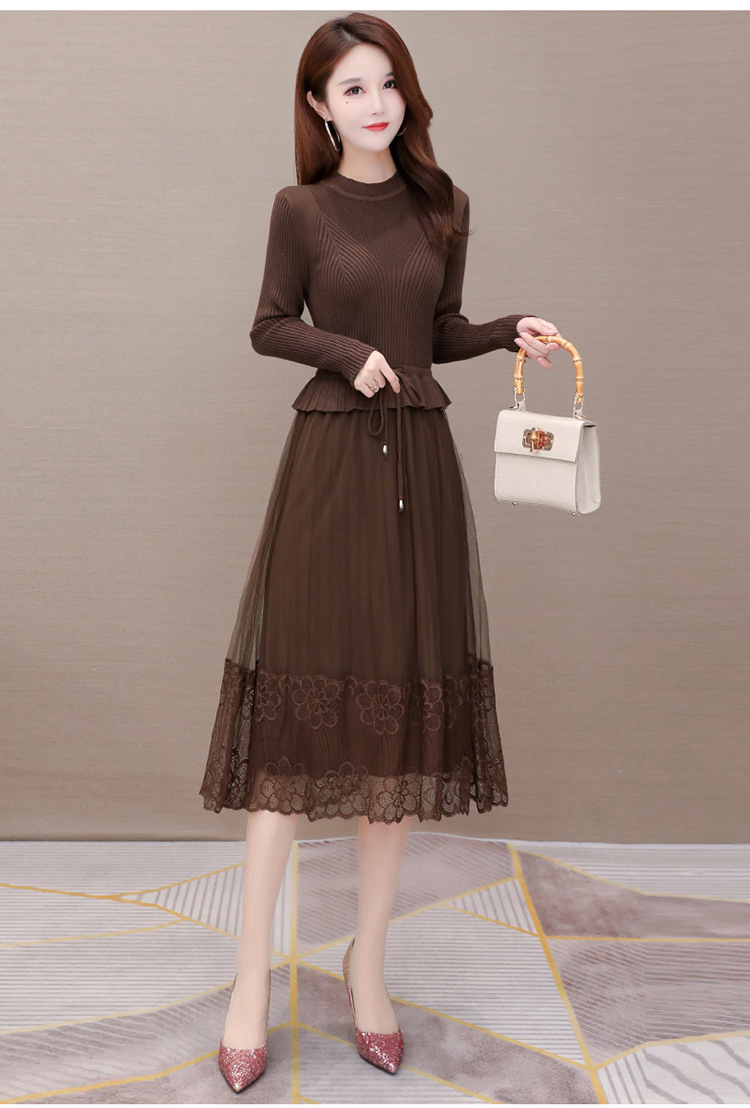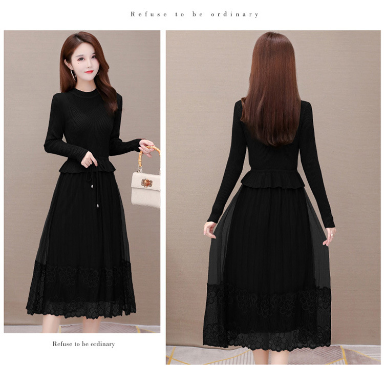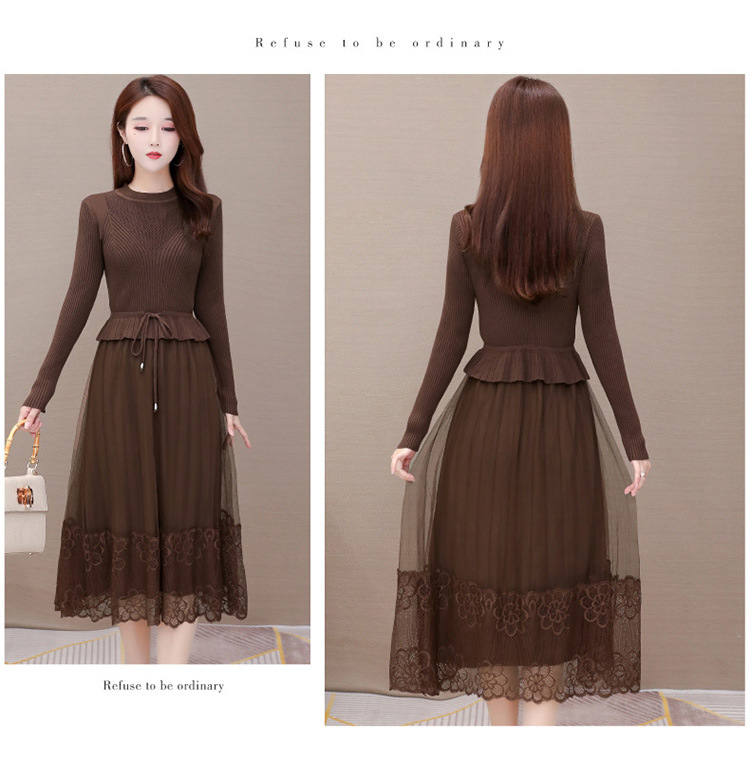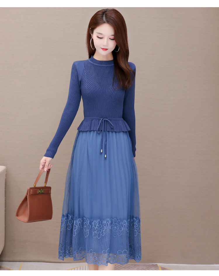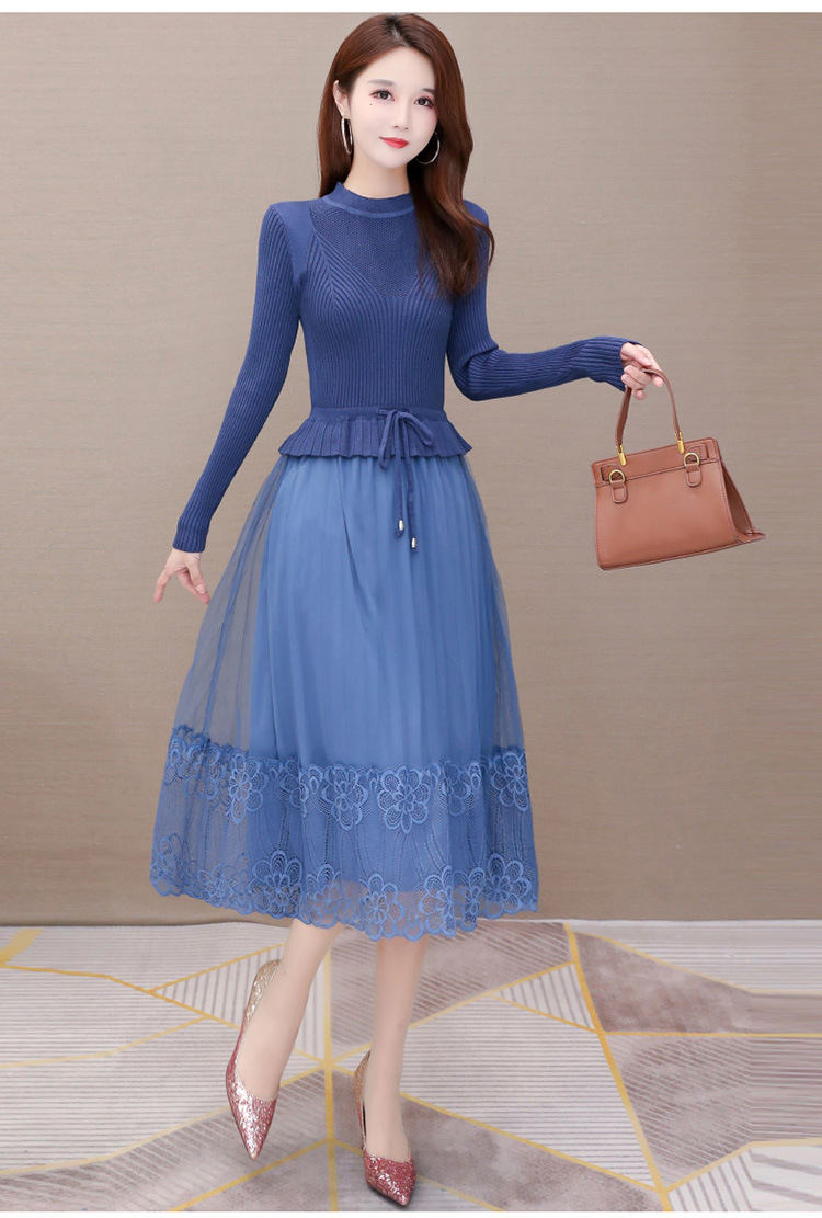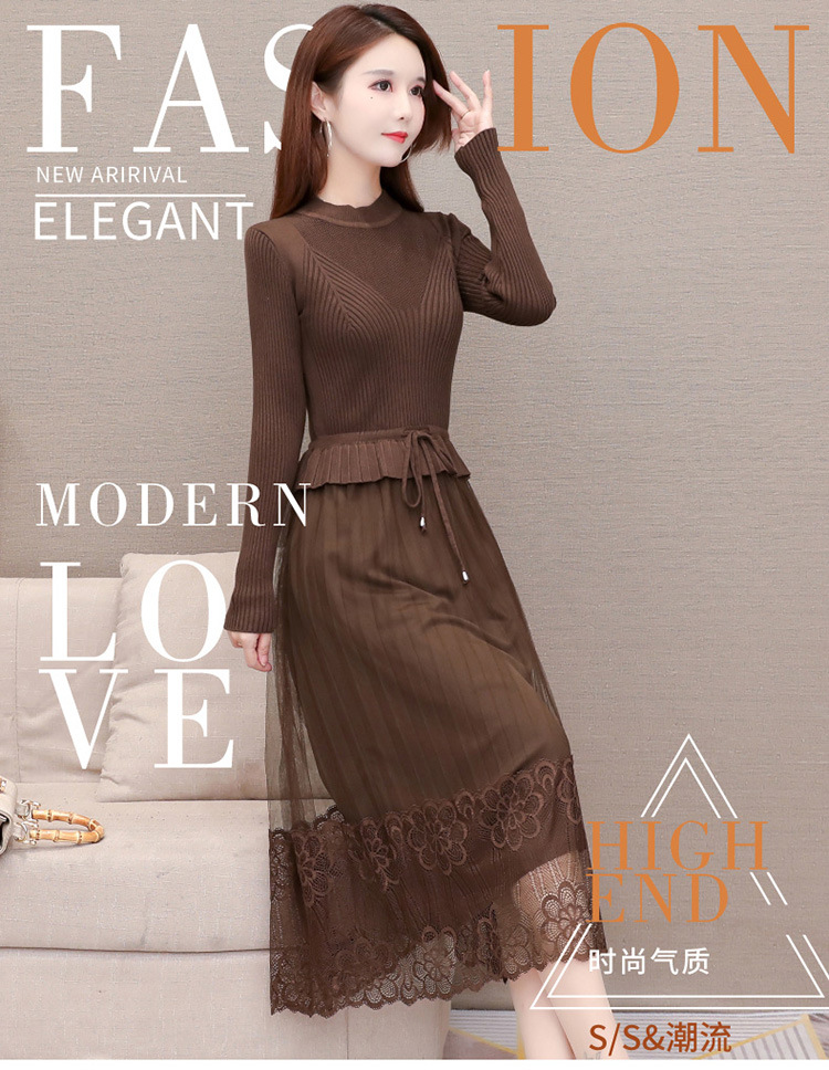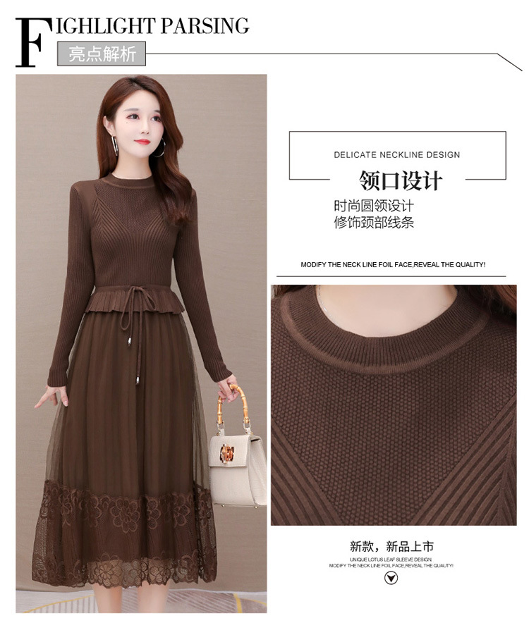 QYM-LRX-M9206-L长款假两件拼接长袖针织连衣裙