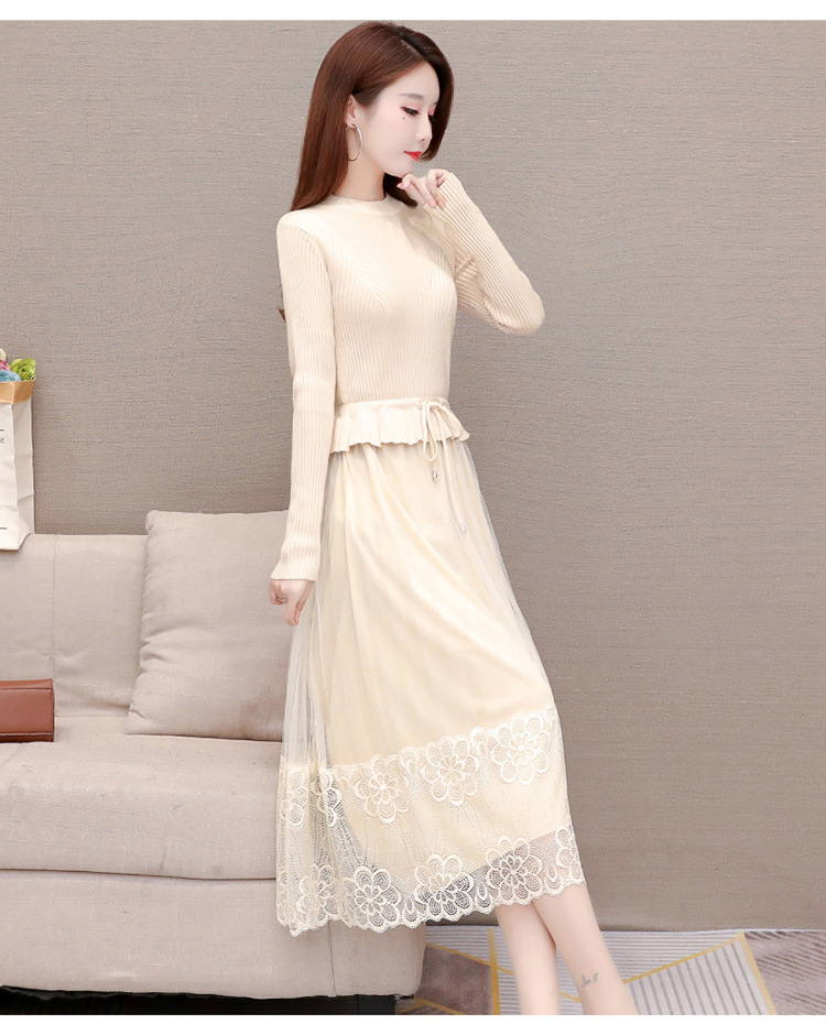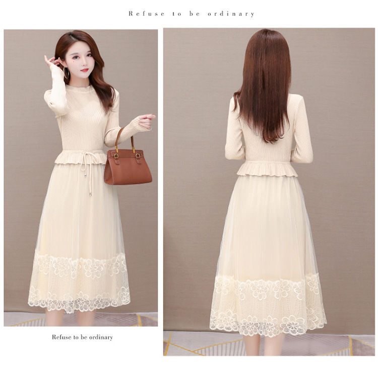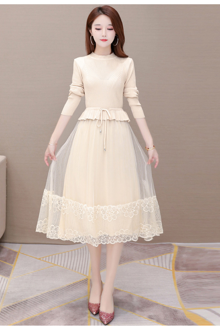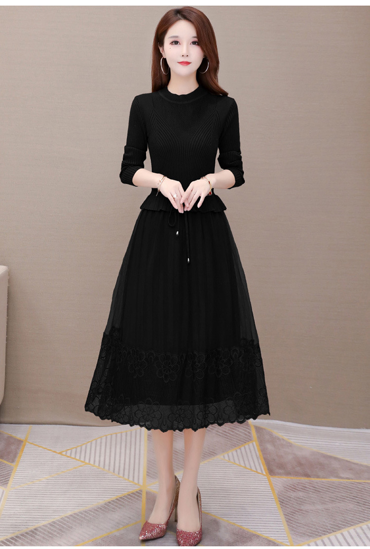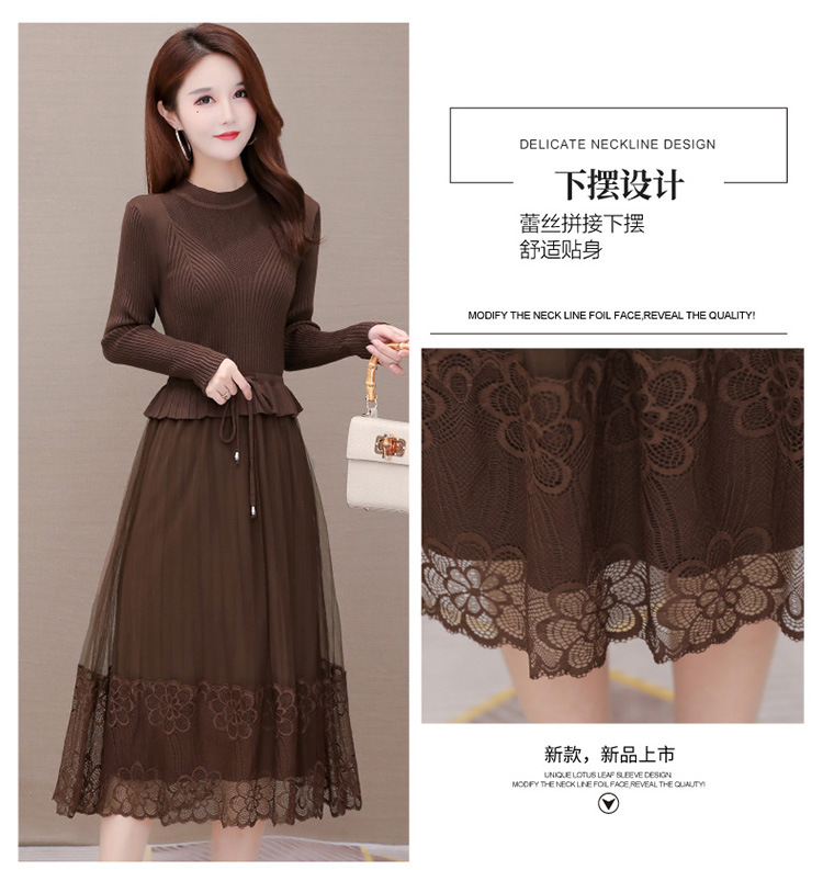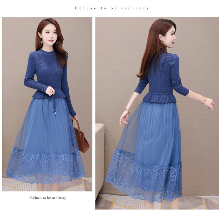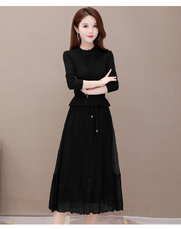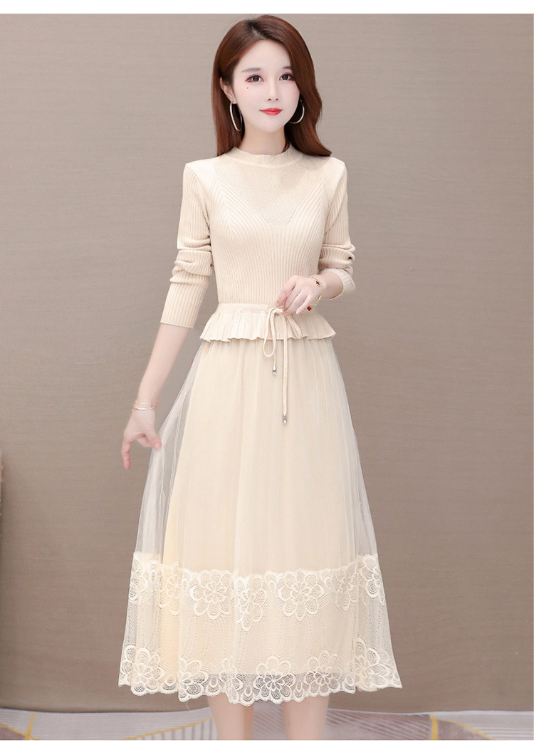 QYM-LRX-M9206-L长款假两件拼接长袖针织连衣裙