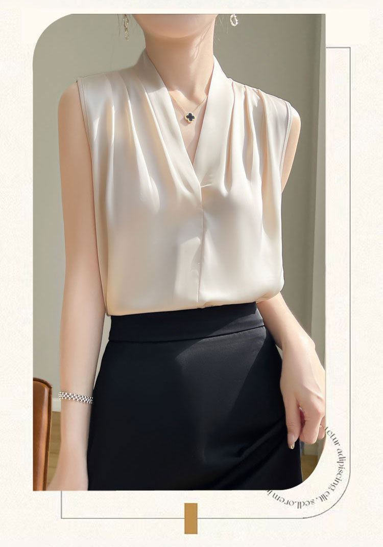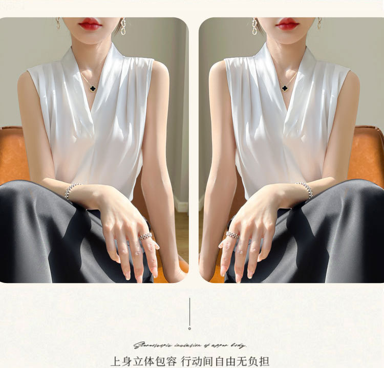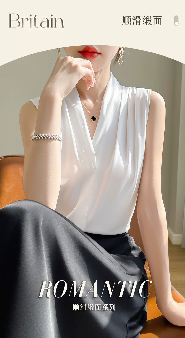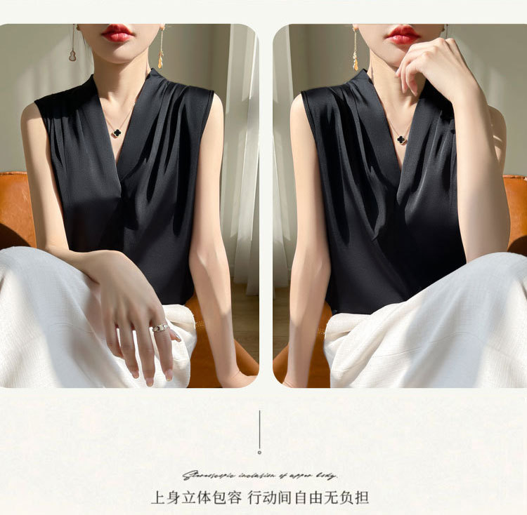 雀说醋酸缎面v领吊带背心女气质显瘦西装 内搭无袖外穿挂脖上衣ALA12-5-A31