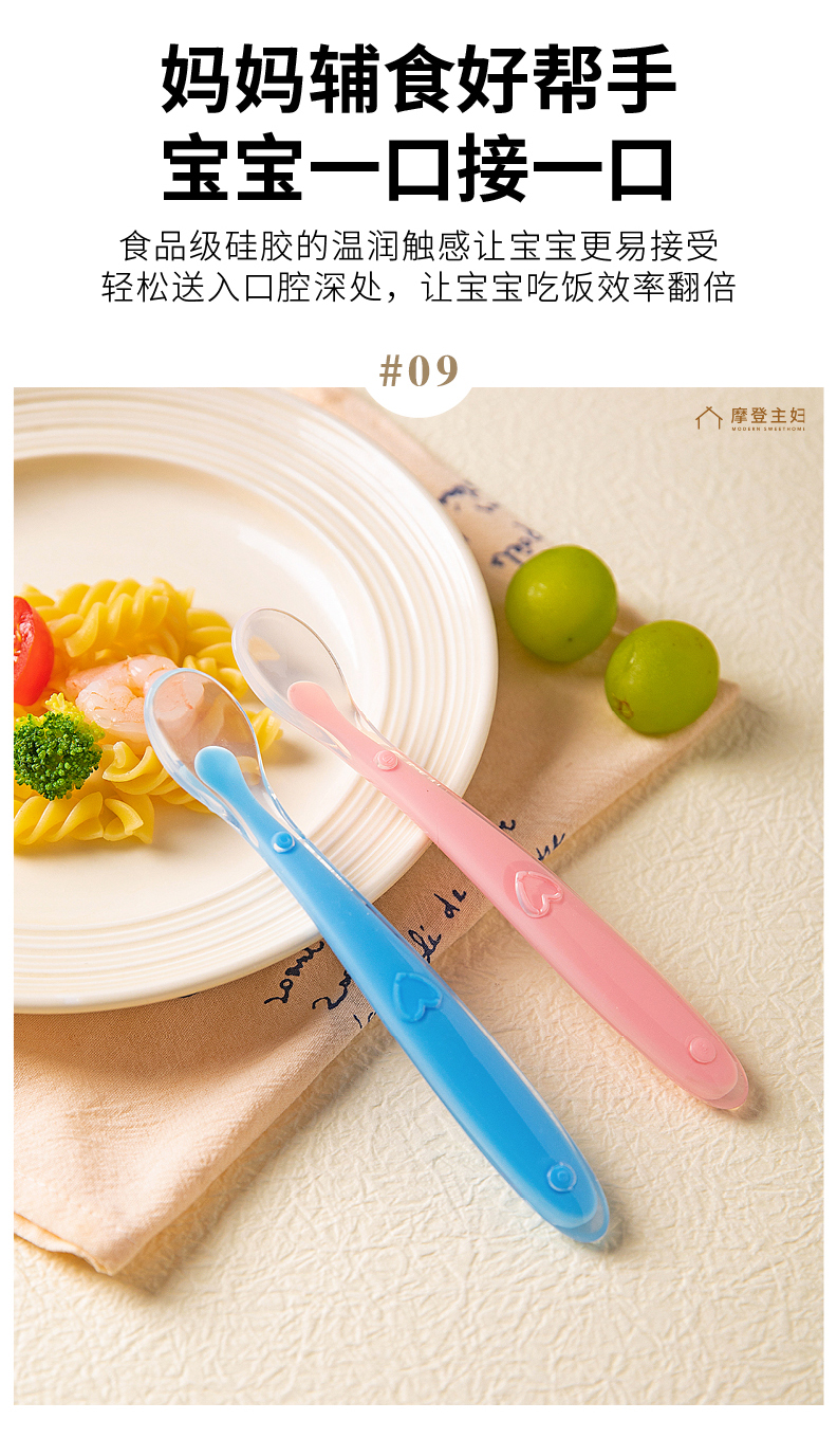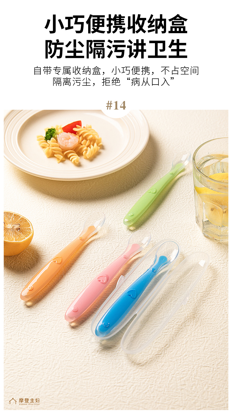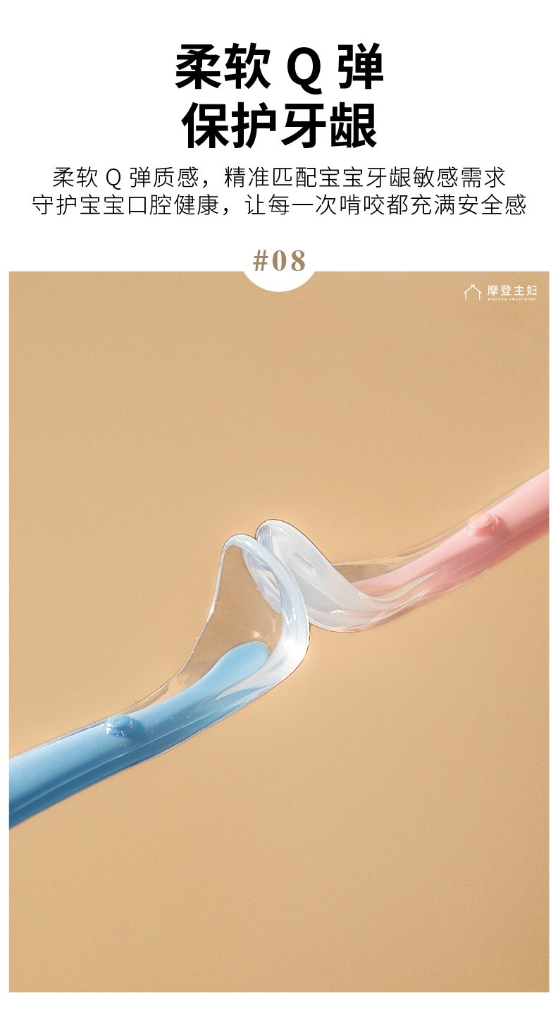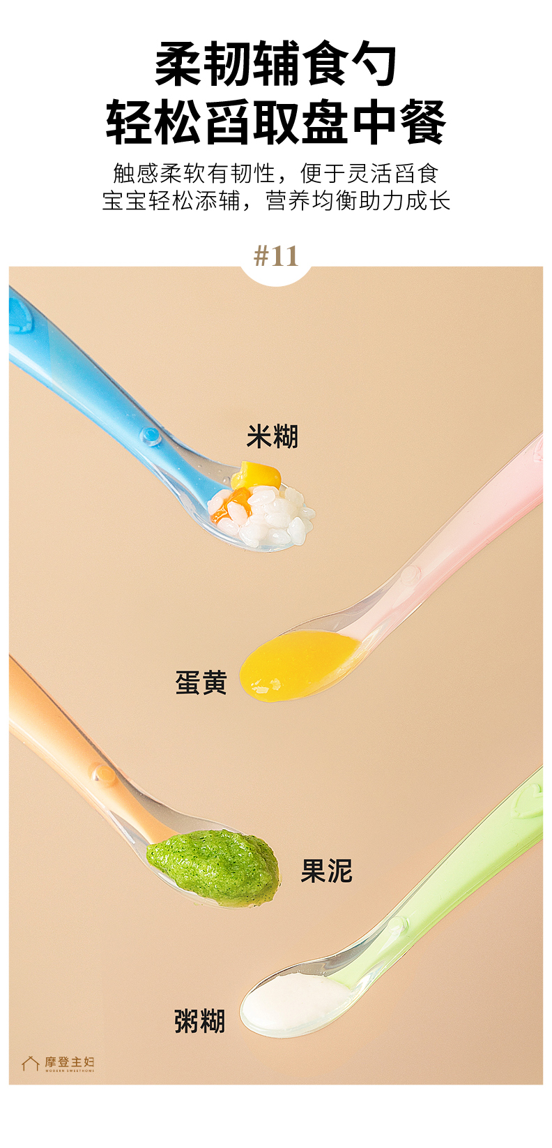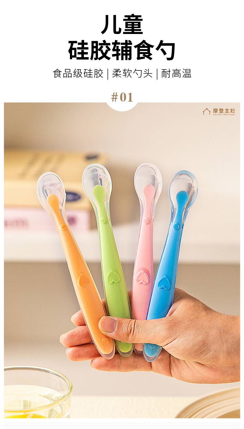 摩登主妇硅胶勺子新生婴儿吃饭专用食品级儿童宝宝辅食餐具小勺子
