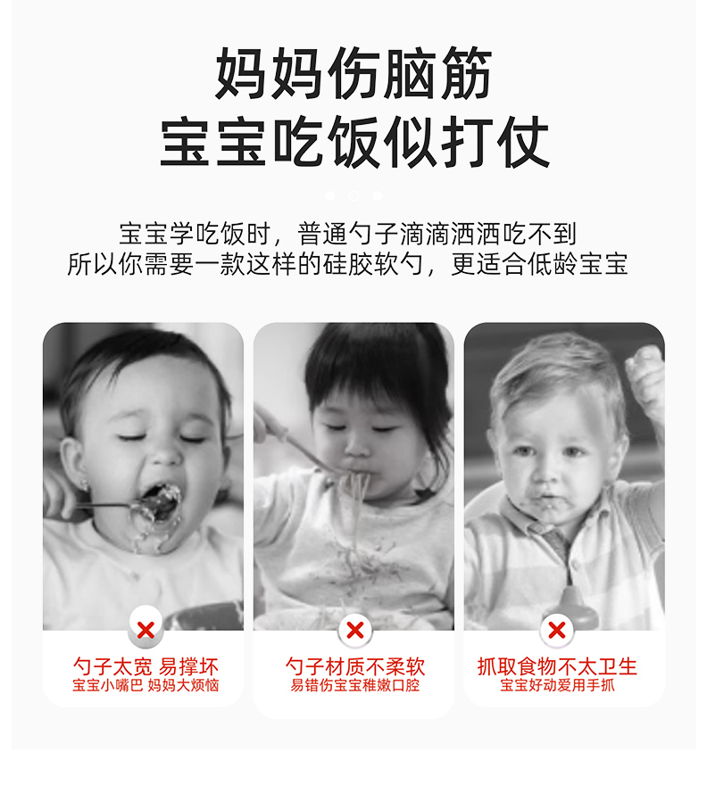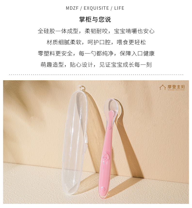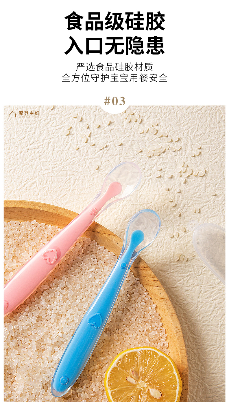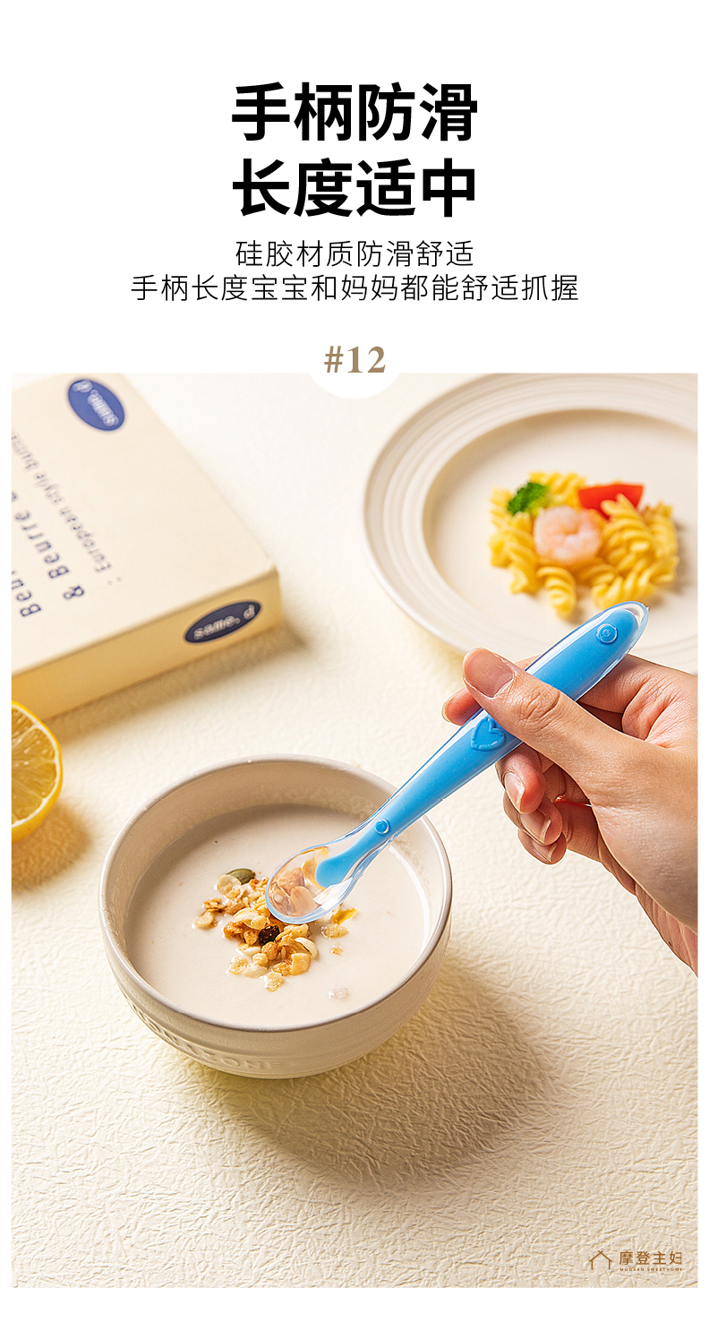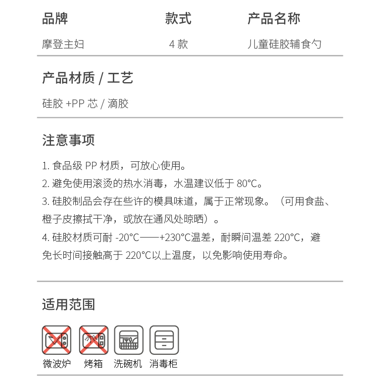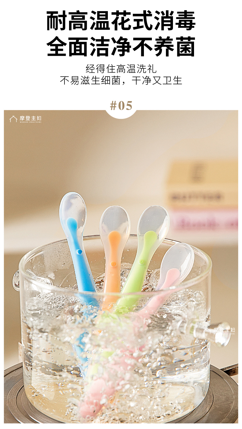 摩登主妇硅胶勺子新生婴儿吃饭专用食品级儿童宝宝辅食餐具小勺子