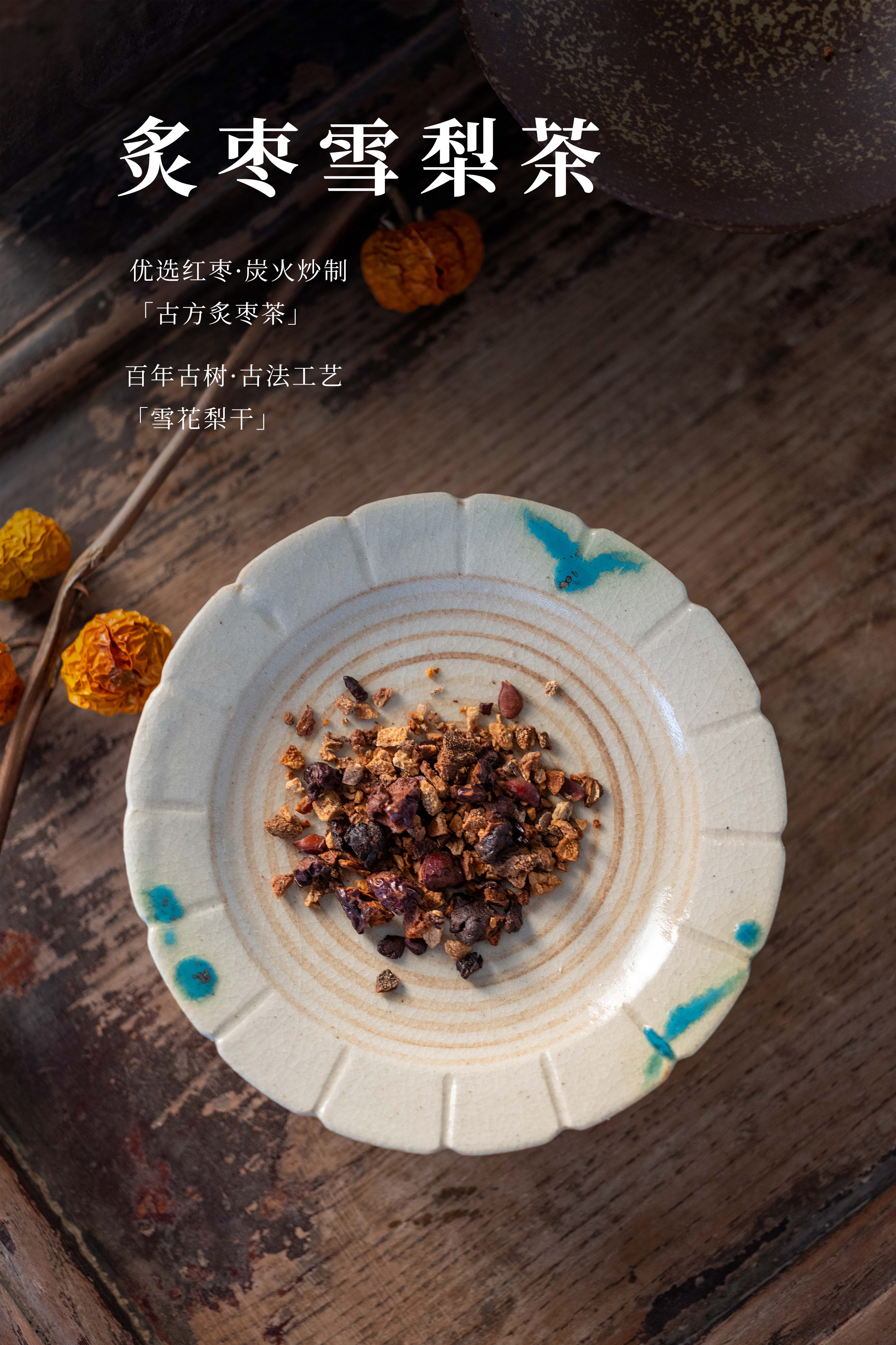 炙枣雪梨茶 | 炭火炒制新疆优质灰枣,百年古树雪梨干
