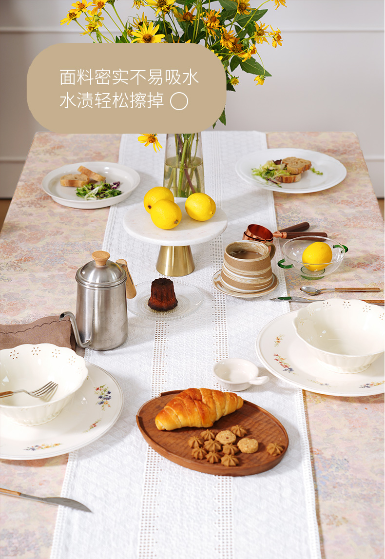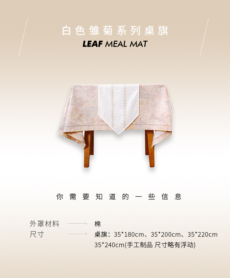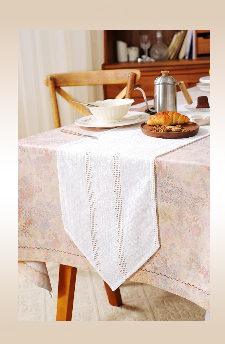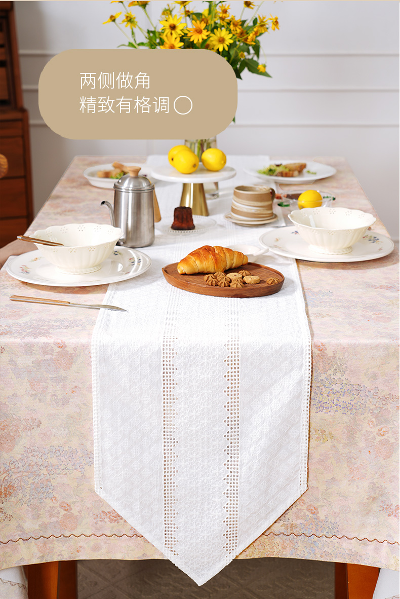 白色雏菊系列桌旗轻奢高端田园复古茶几高级感