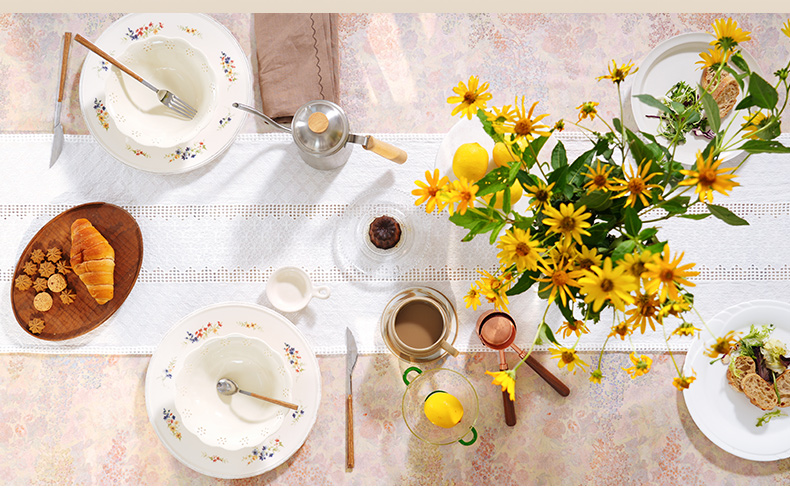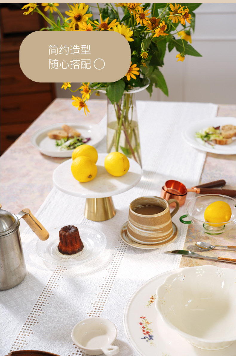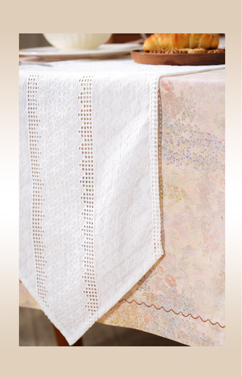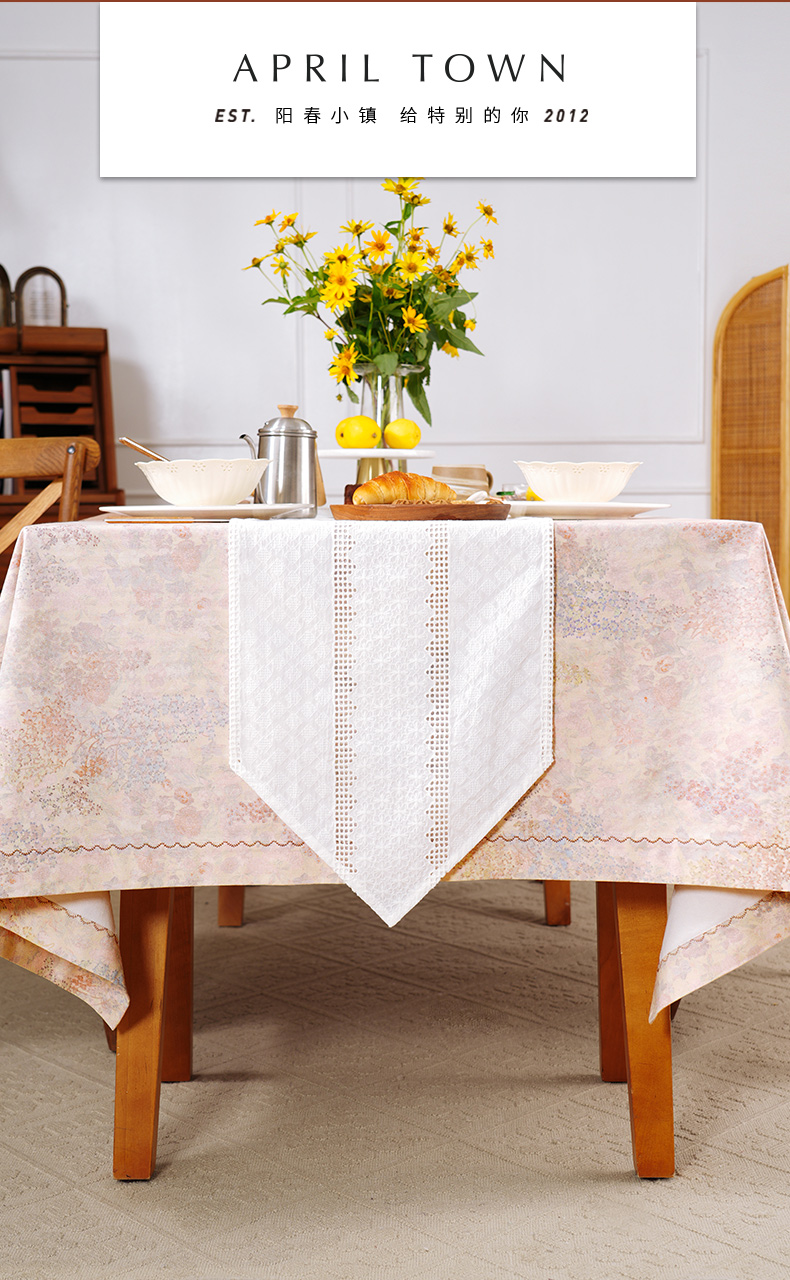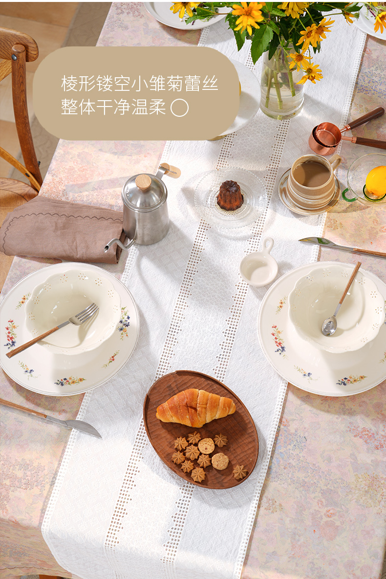 白色雏菊系列桌旗轻奢高端田园复古茶几高级感