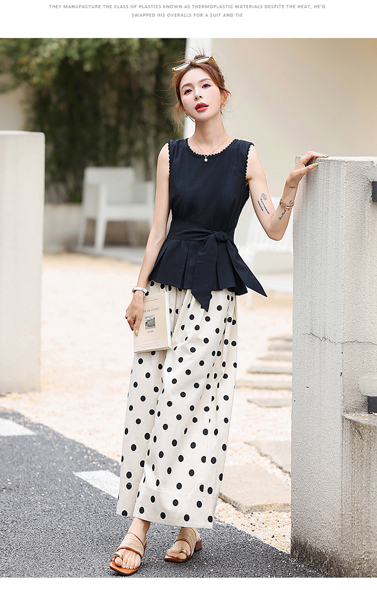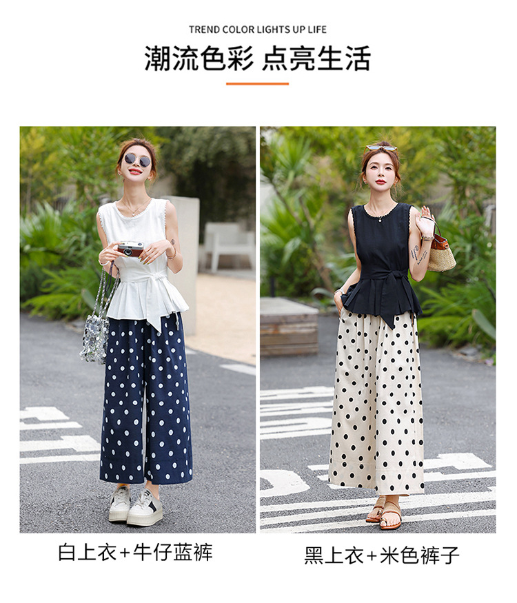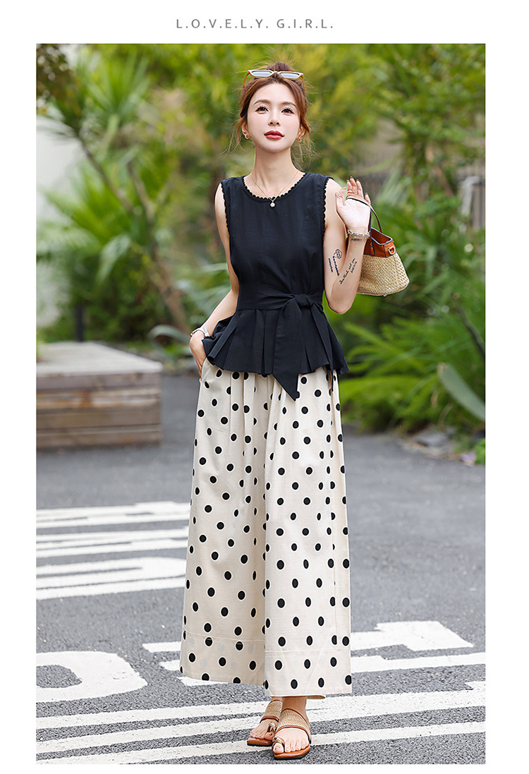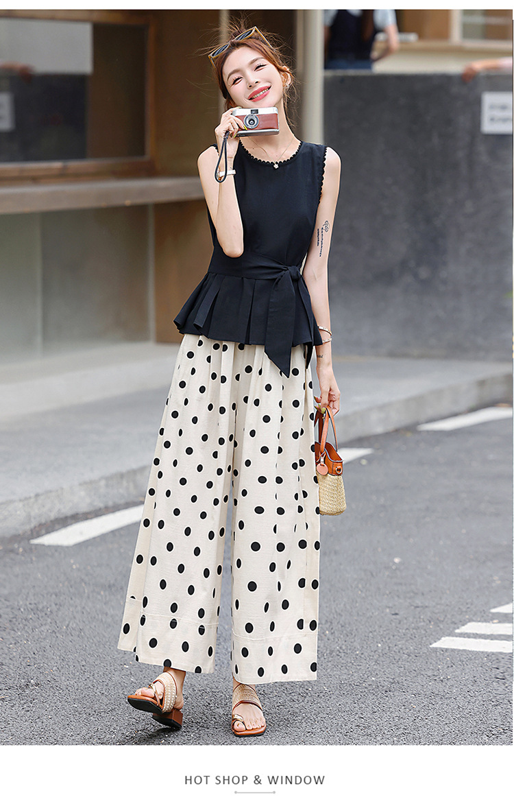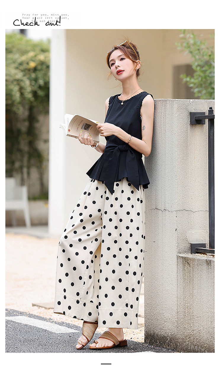 小香风气质女神范显瘦,御姐职业无袖波点阔腿裤两件套HR-YWY9006