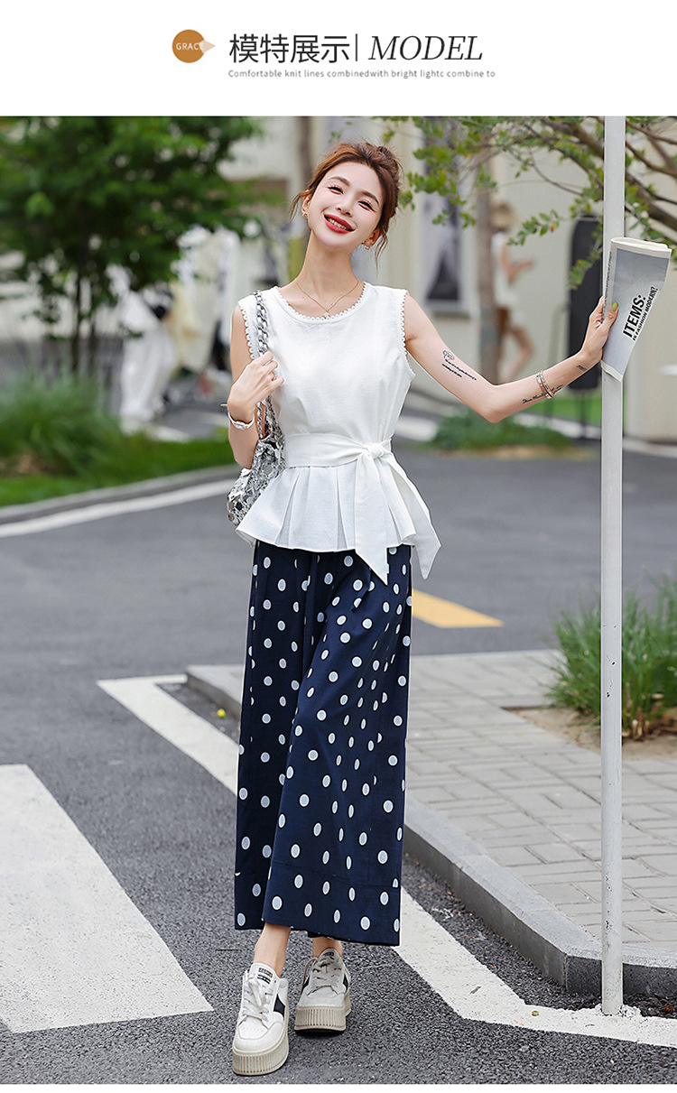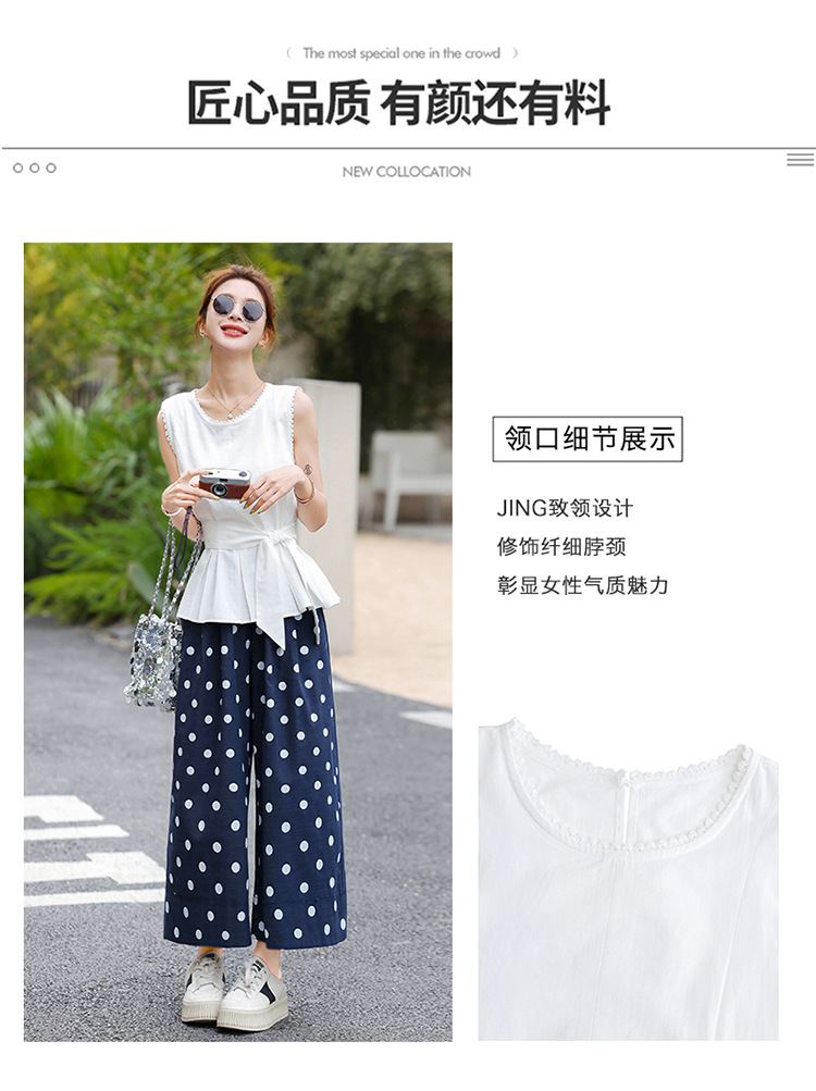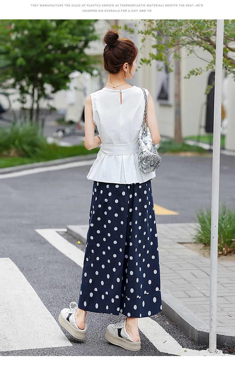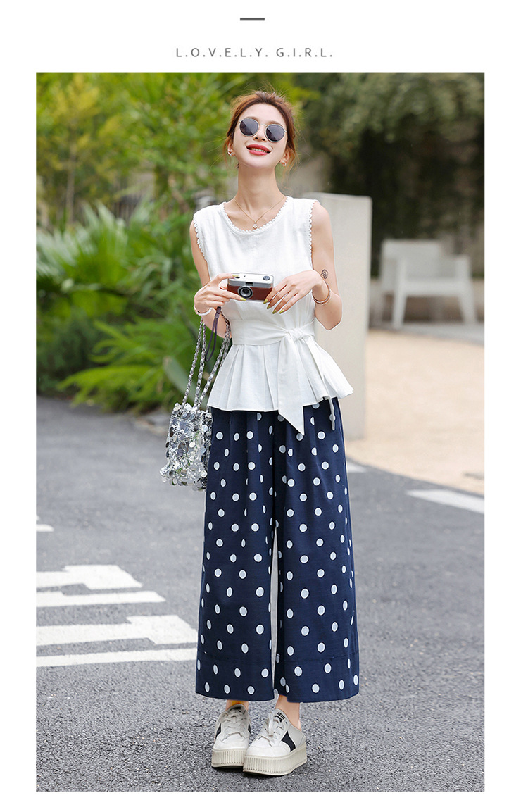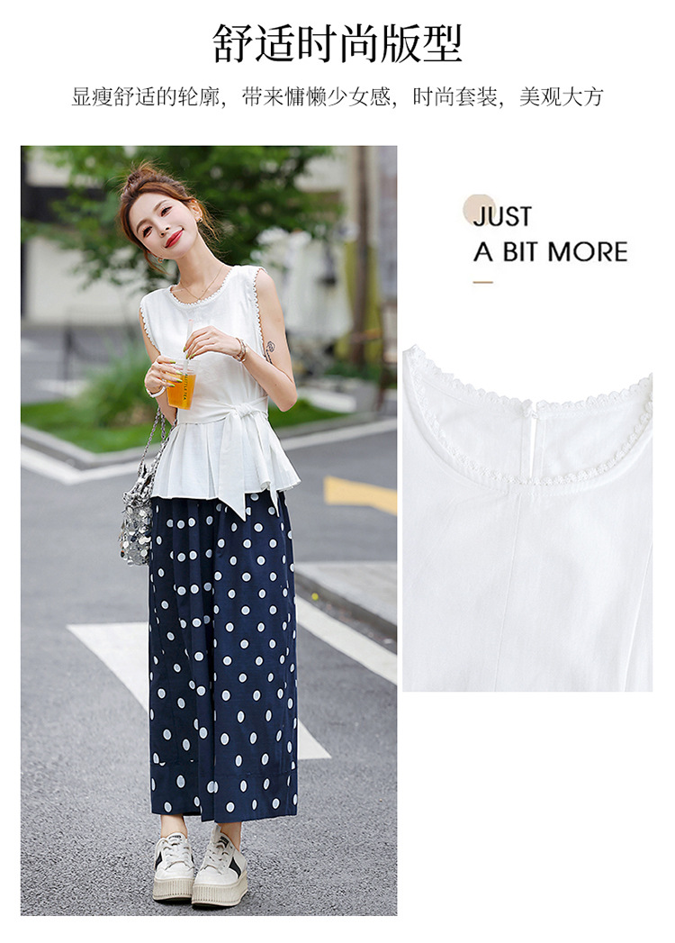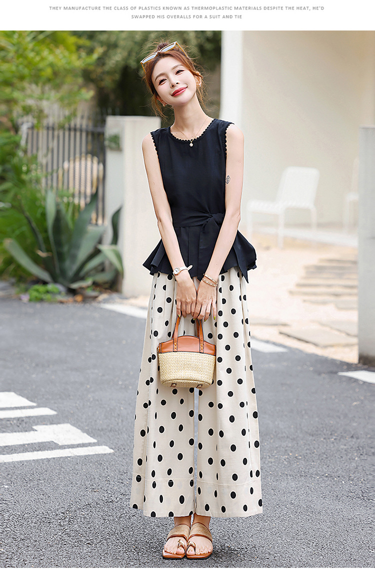 小香风气质女神范显瘦,御姐职业无袖波点阔腿裤两件套HR-YWY9006