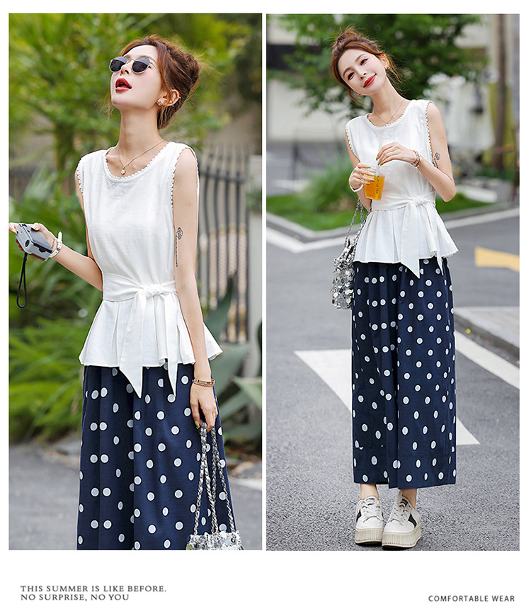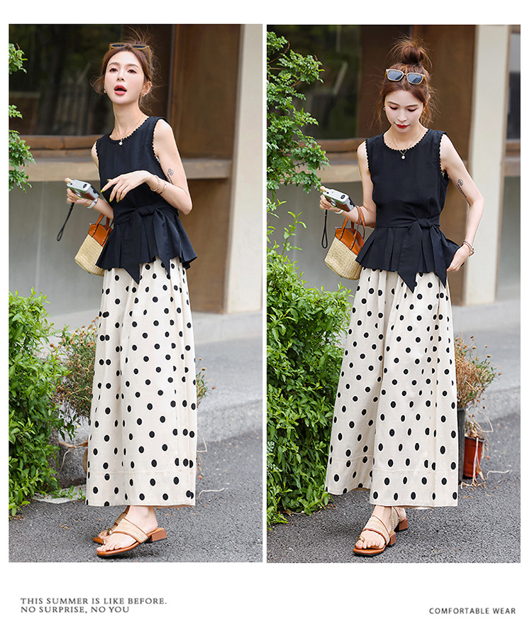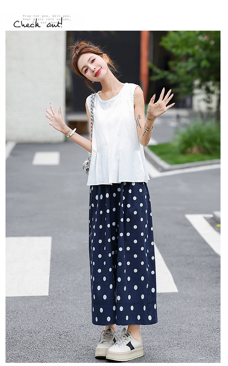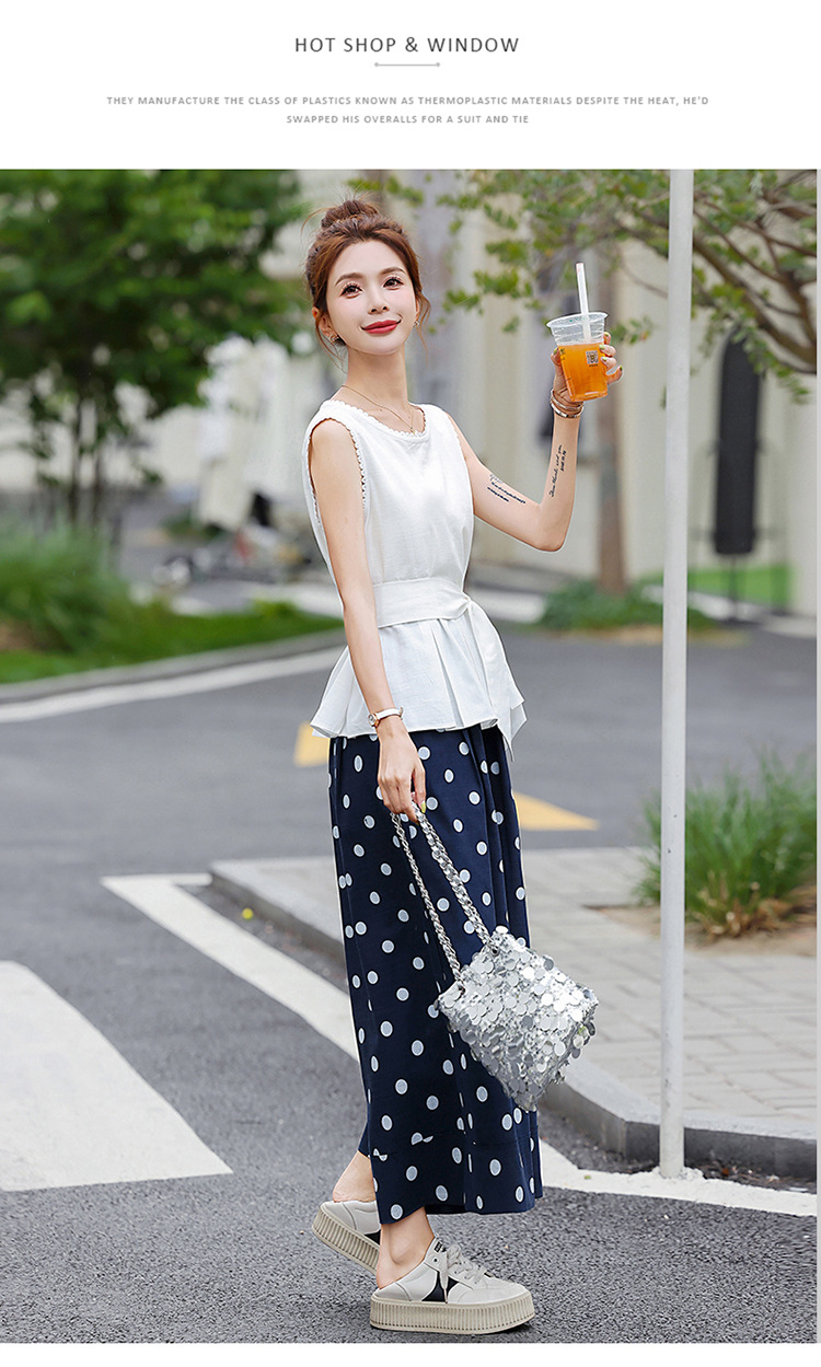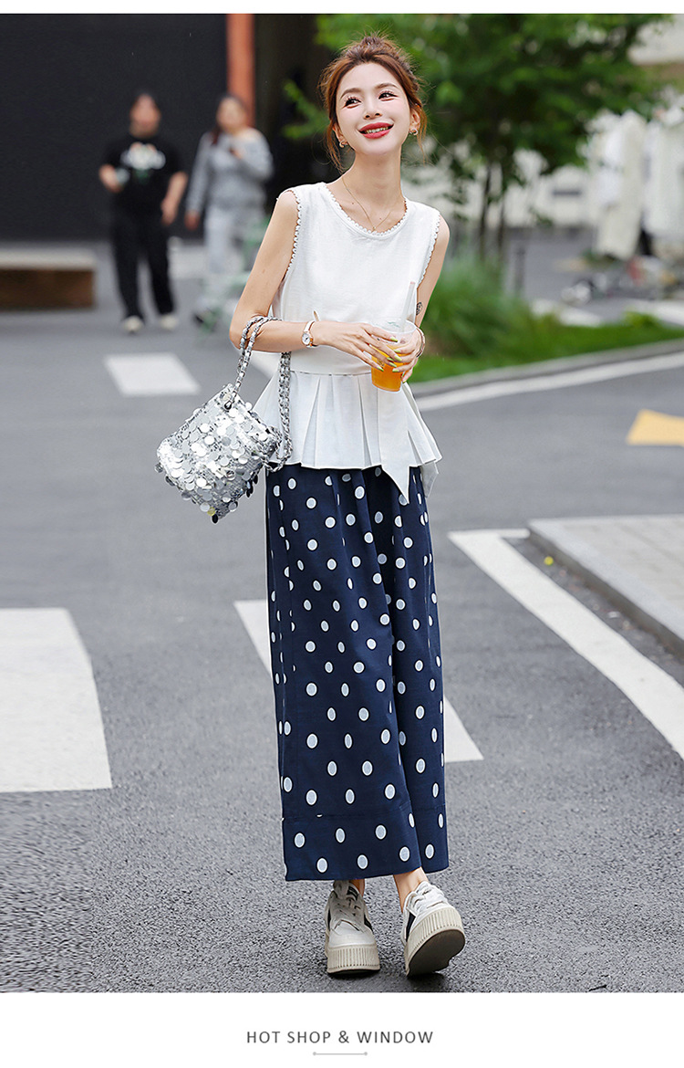 小香风气质女神范显瘦,御姐职业无袖波点阔腿裤两件套HR-YWY9006