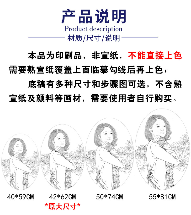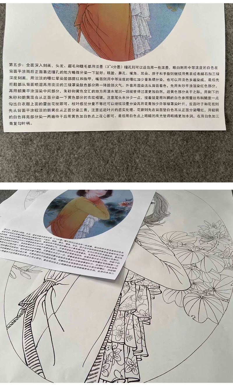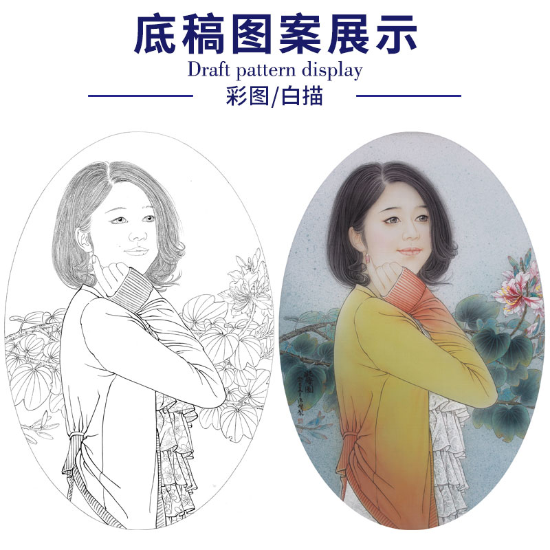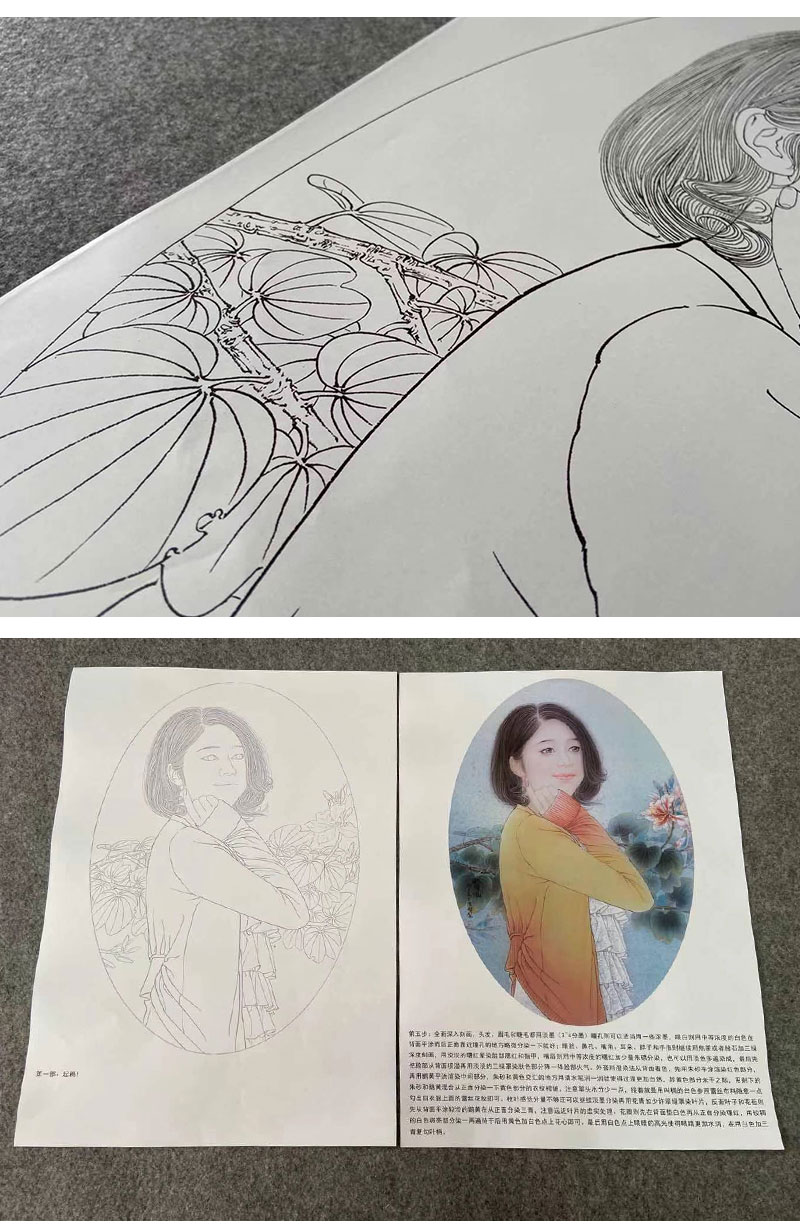 【有步骤、大彩图】盘虎杰工笔画白描底稿现代人物小品《凝香图》初学者临摹人物线稿HJ44