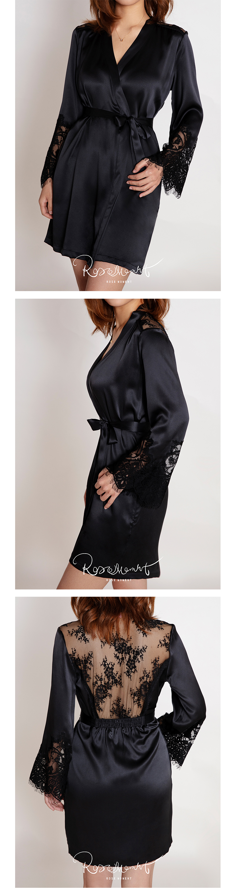 手工盘花性感中裙 蕾丝美背丝滑中袍 DD2-1