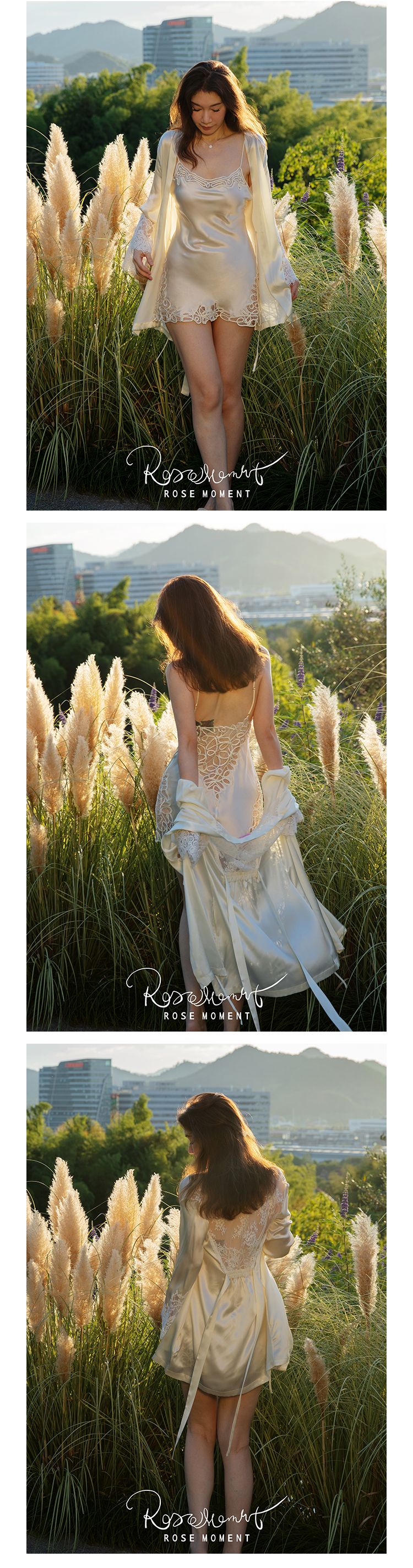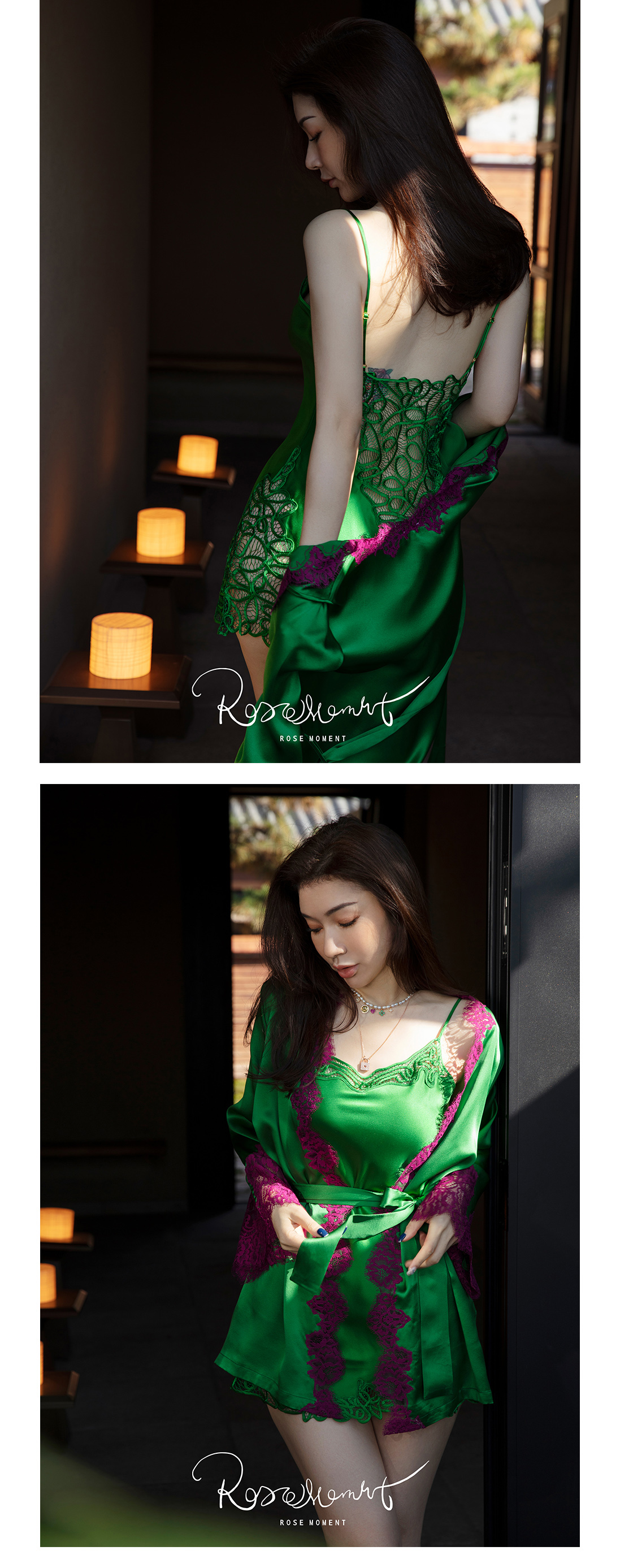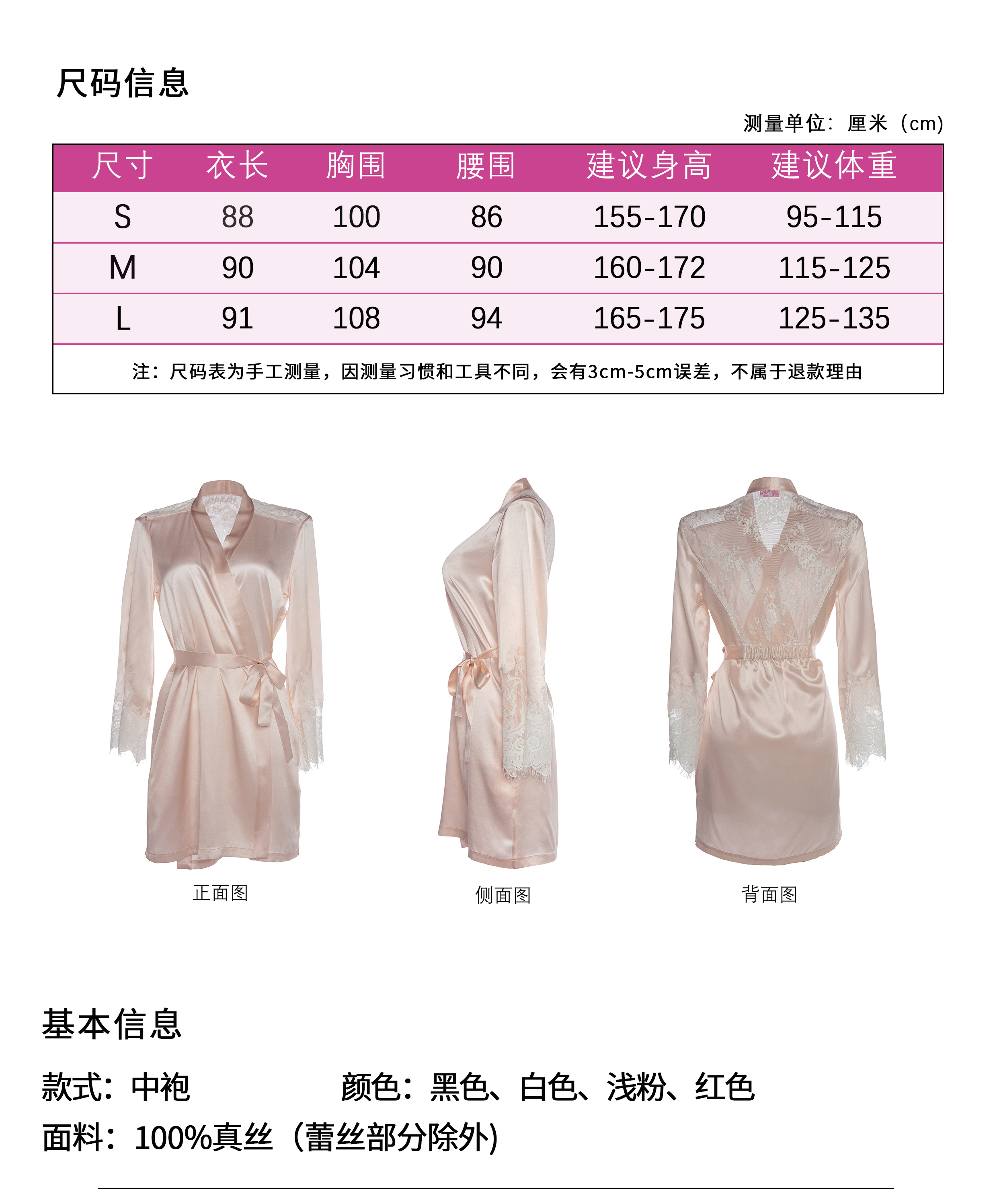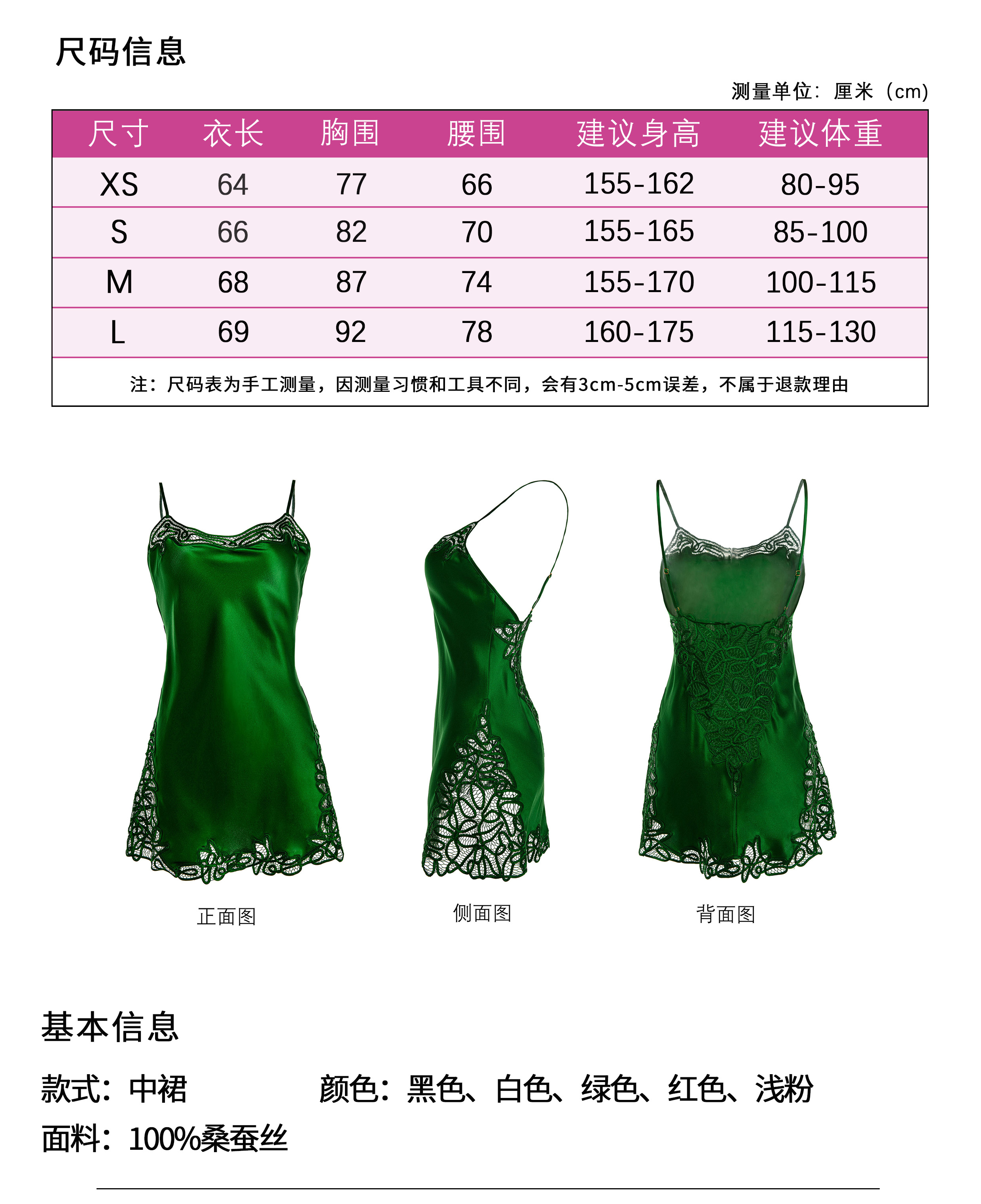彩色蕾丝露背中款真丝吊裙睡袍 A22102