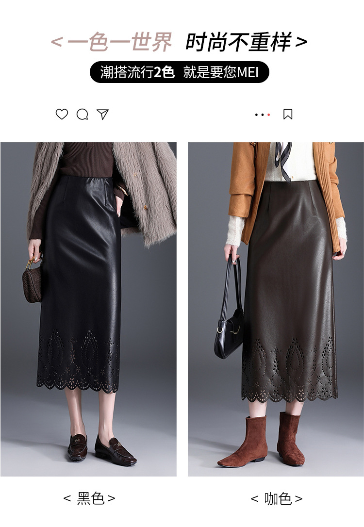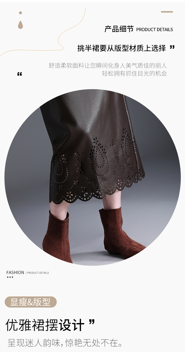 QYM 767-Y皮包裙PU皮裙时尚高腰半身裙开衩一步裙 商品图4