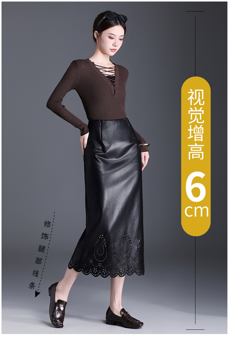 QYM 767-Y皮包裙PU皮裙时尚高腰半身裙开衩一步裙 商品图3