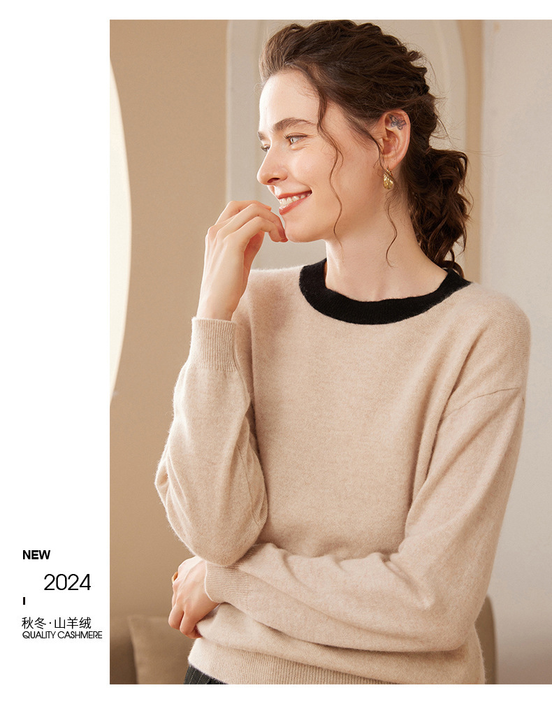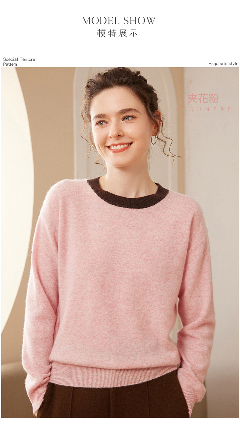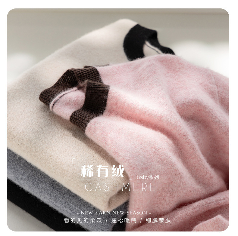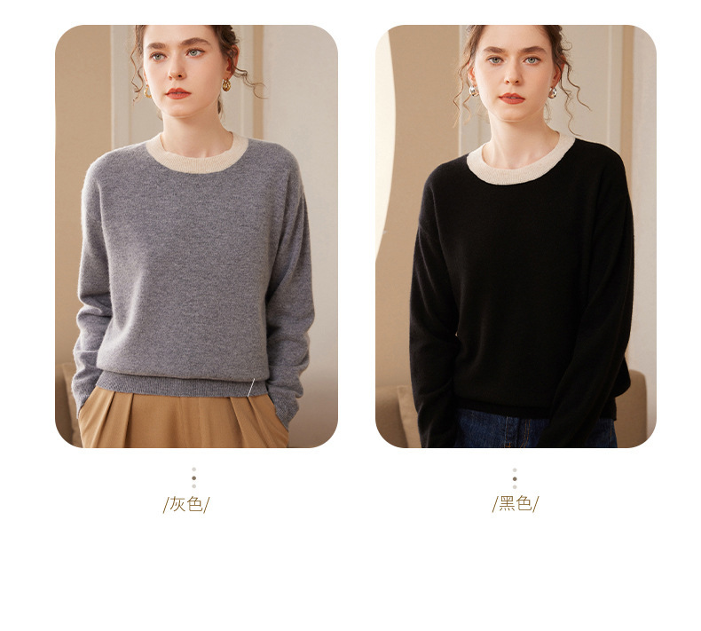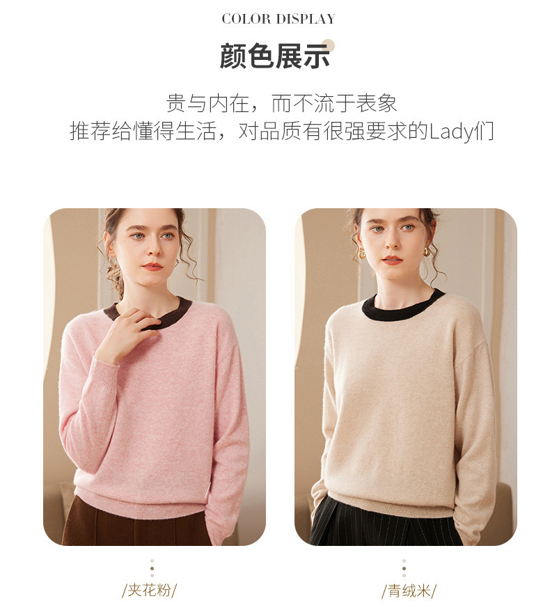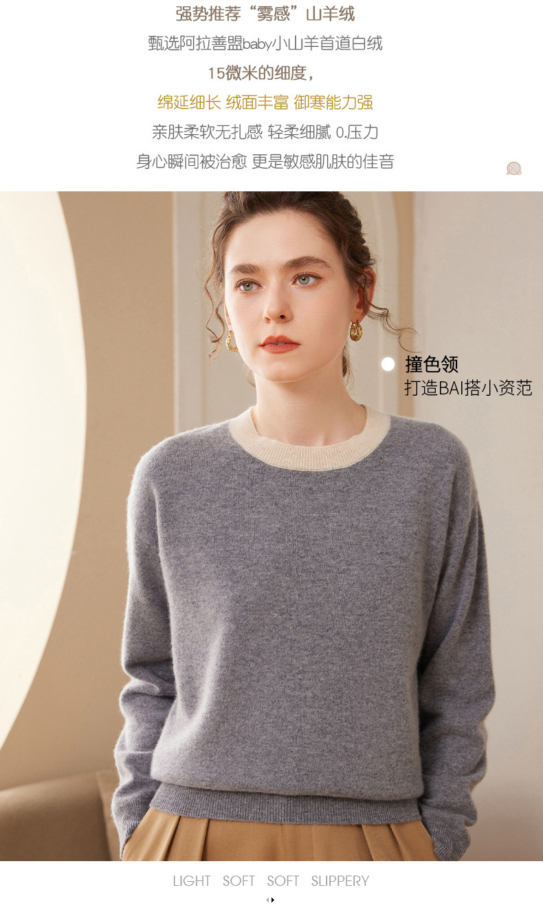 【高货QJ】全新升级【铂金会员330/天猫439/差价109】(60749) 洛诗琳秋冬新款拼色打底衫韩系套头宽松羊绒混纺针织衫