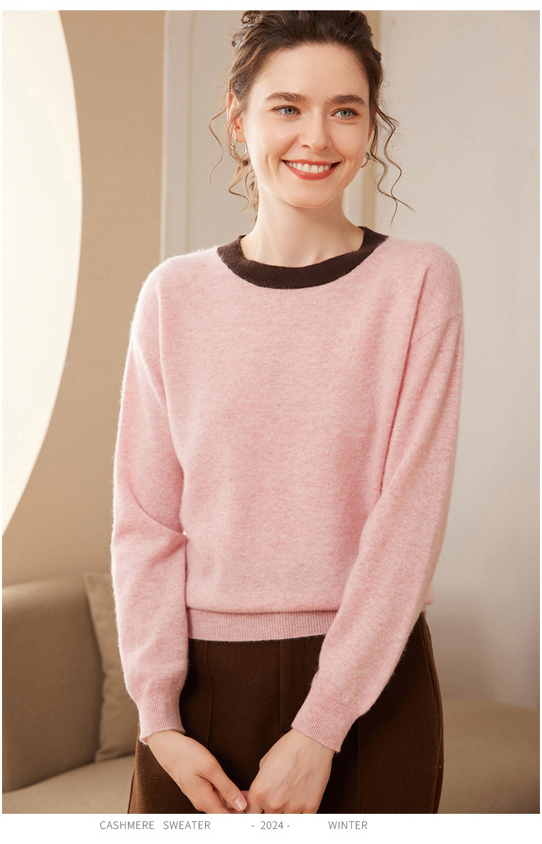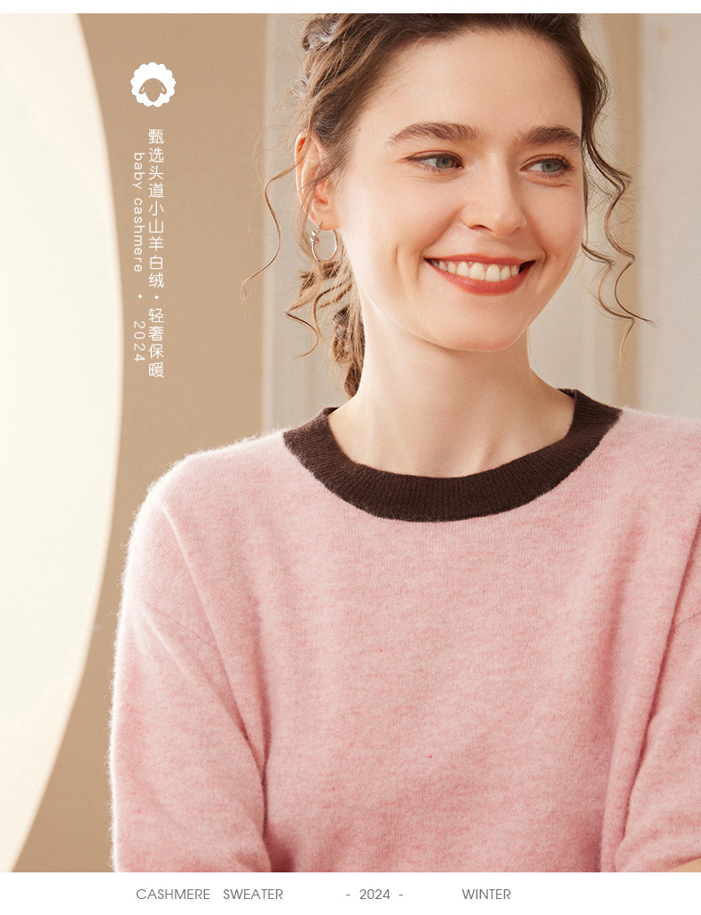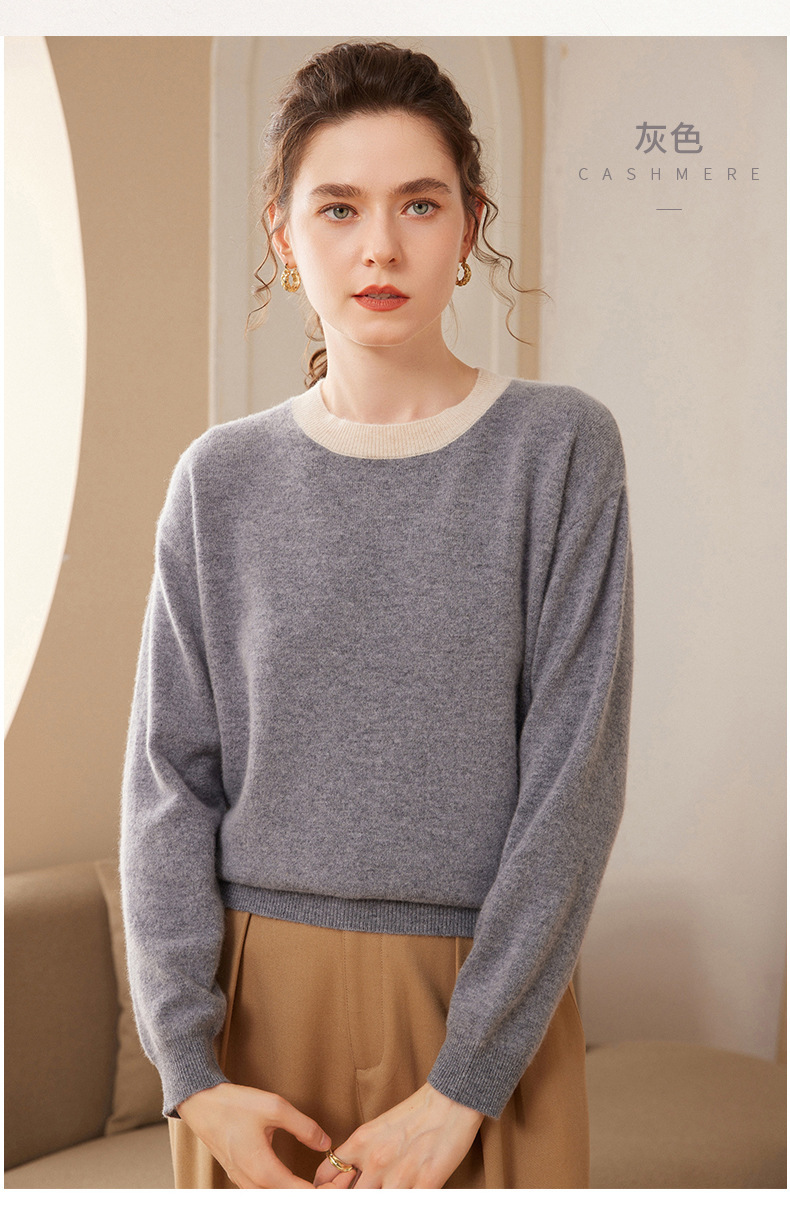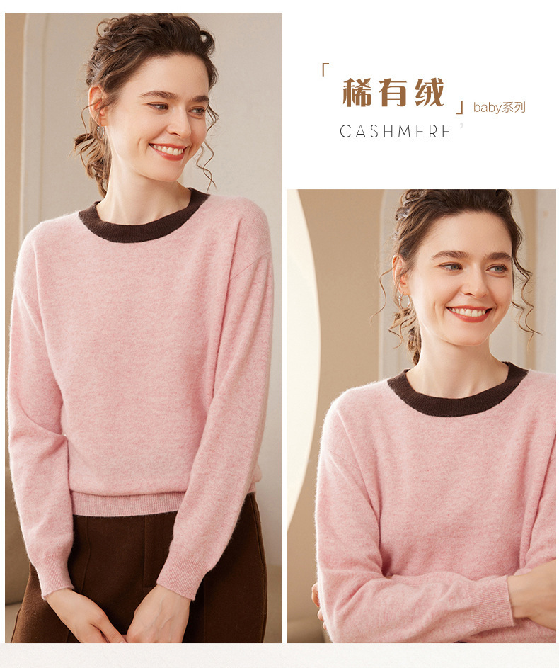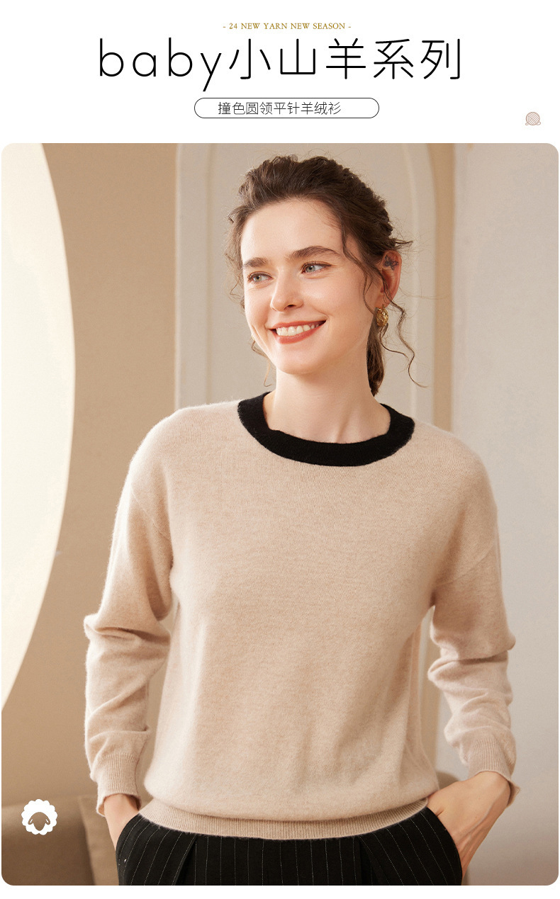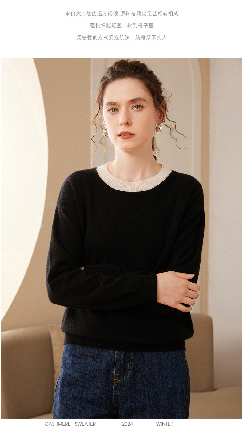 【高货QJ】全新升级【铂金会员330/天猫439/差价109】(60749) 洛诗琳秋冬新款拼色打底衫韩系套头宽松羊绒混纺针织衫