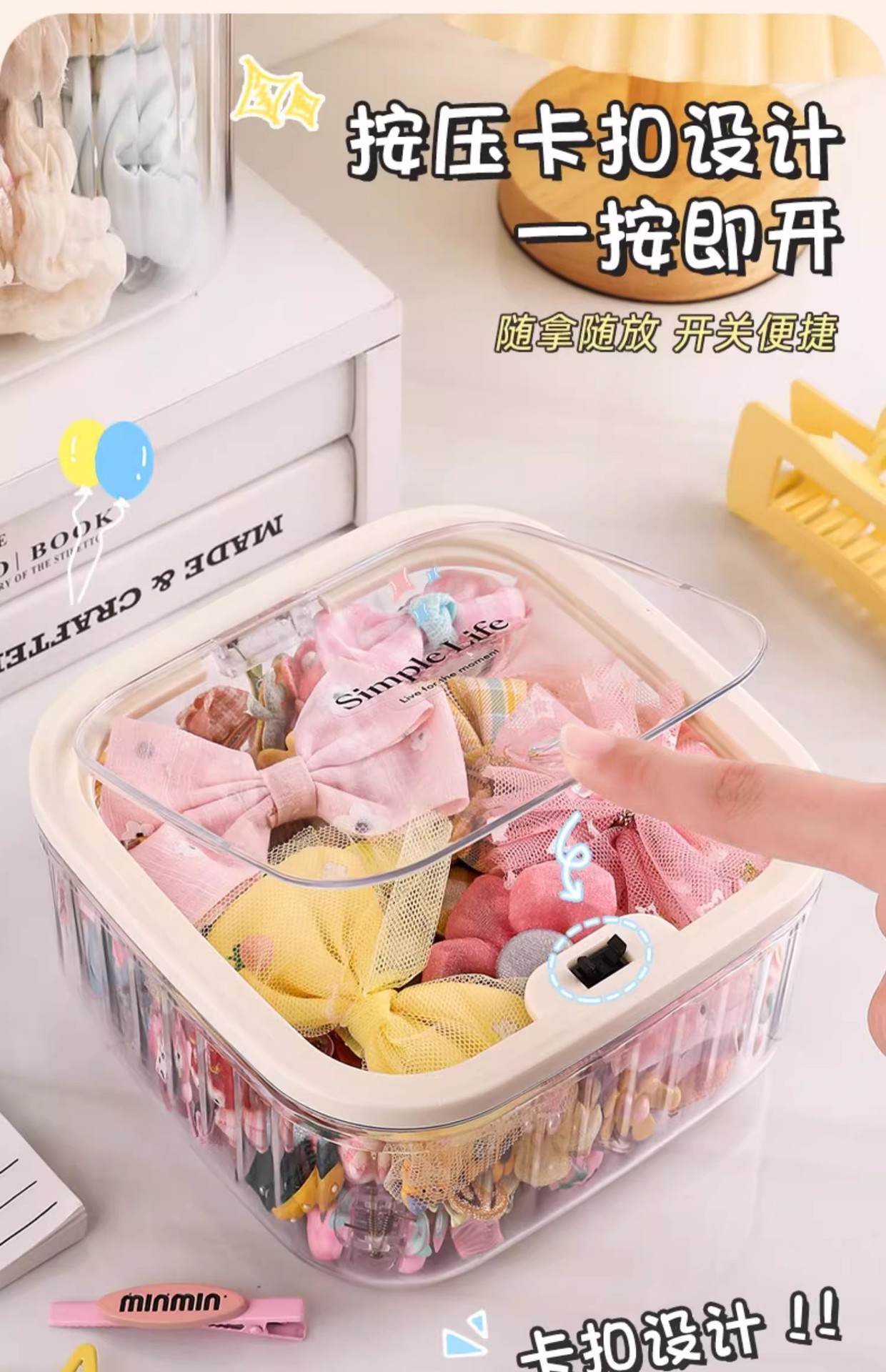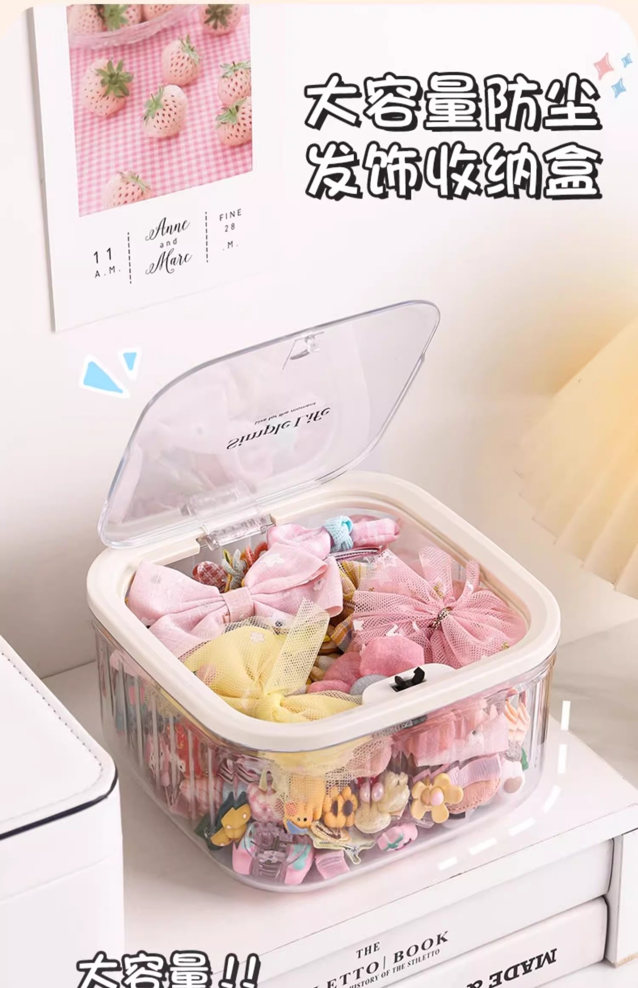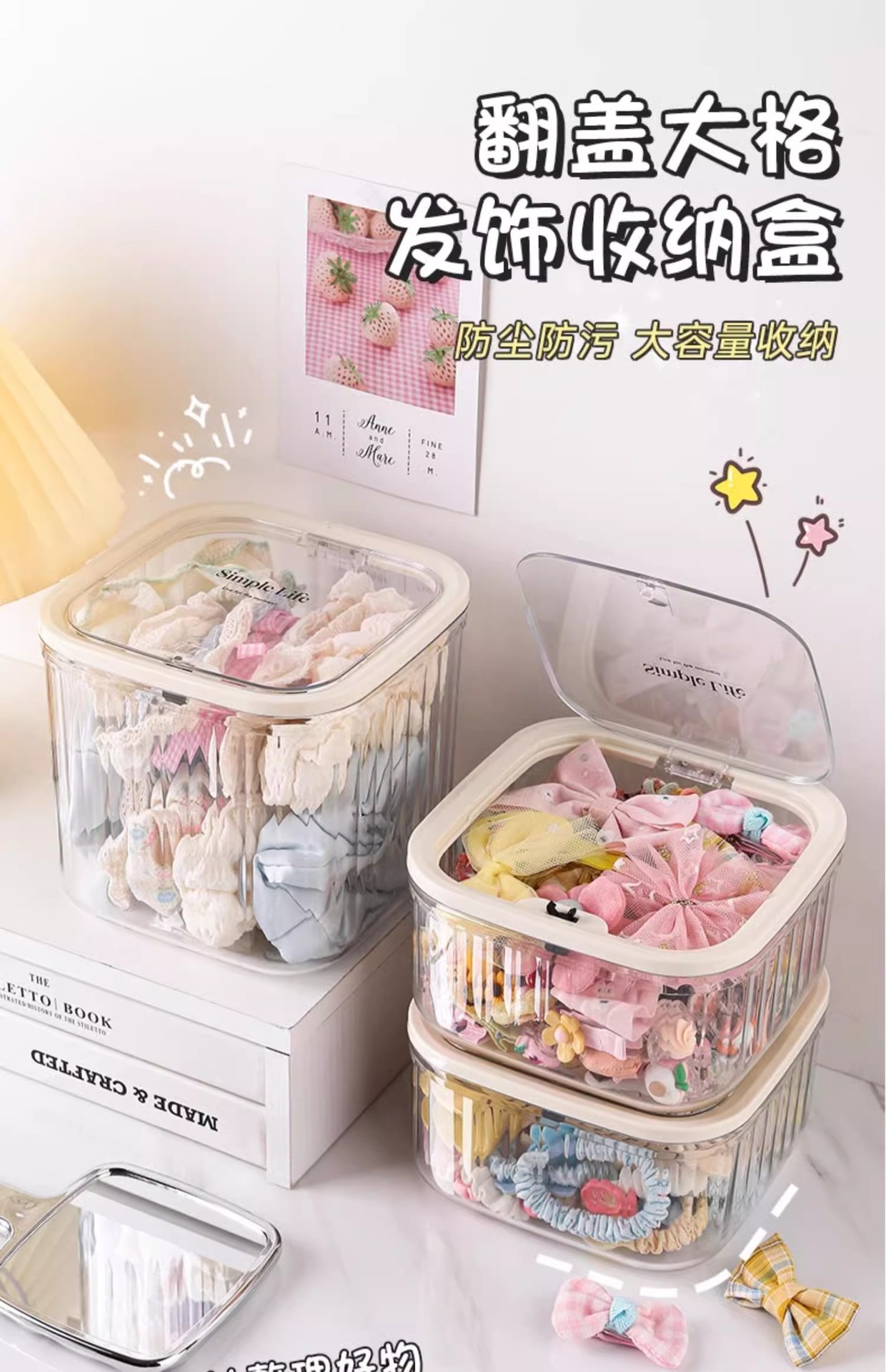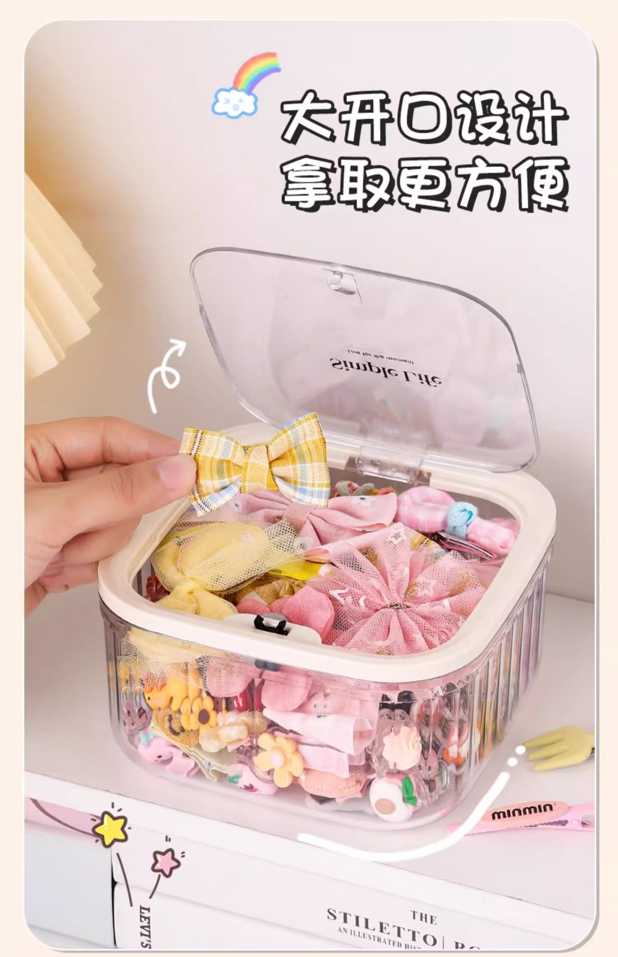 【翻盖大格,发饰收纳盒】儿童发饰收纳盒 小女孩头绳皮筋饰品盒 发夹发卡头饰大容量首饰盒子-QQ