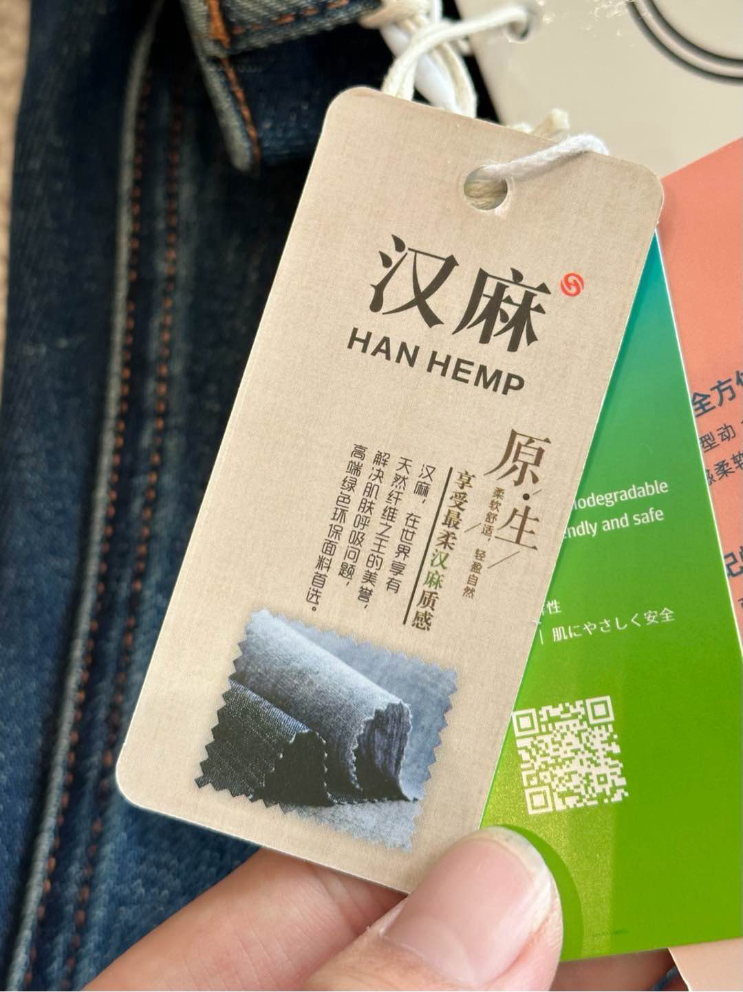 真材实料,可以去其他地方了解下“汉麻”牛仔裤的价格,一般工厂搞不定!!