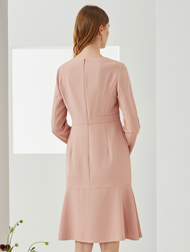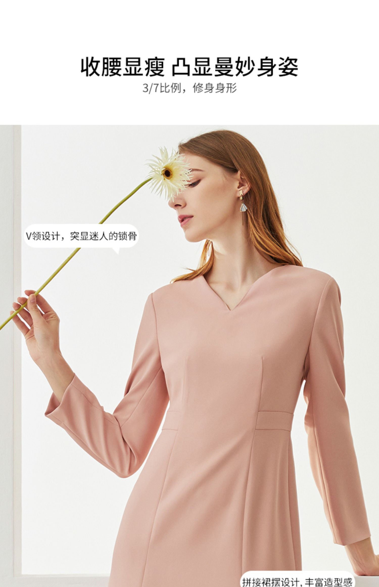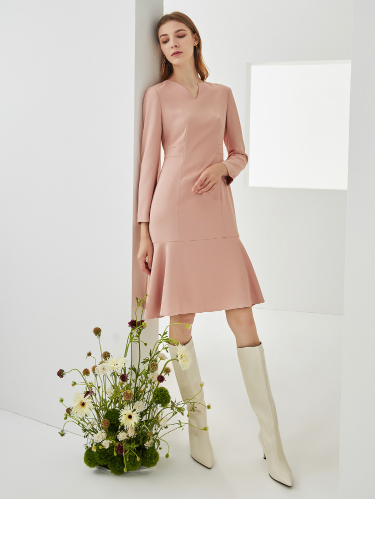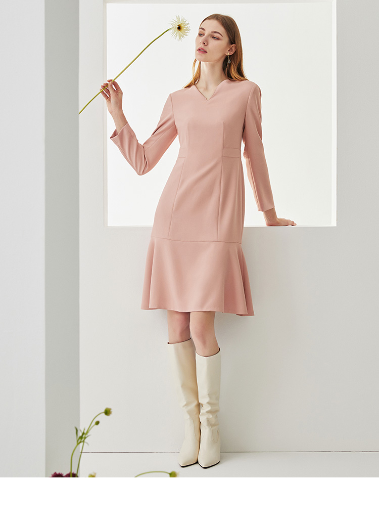 EITIE爱特爱秋季新款时尚洋气V领显瘦修身包臀A字长袖连衣裙C2107822