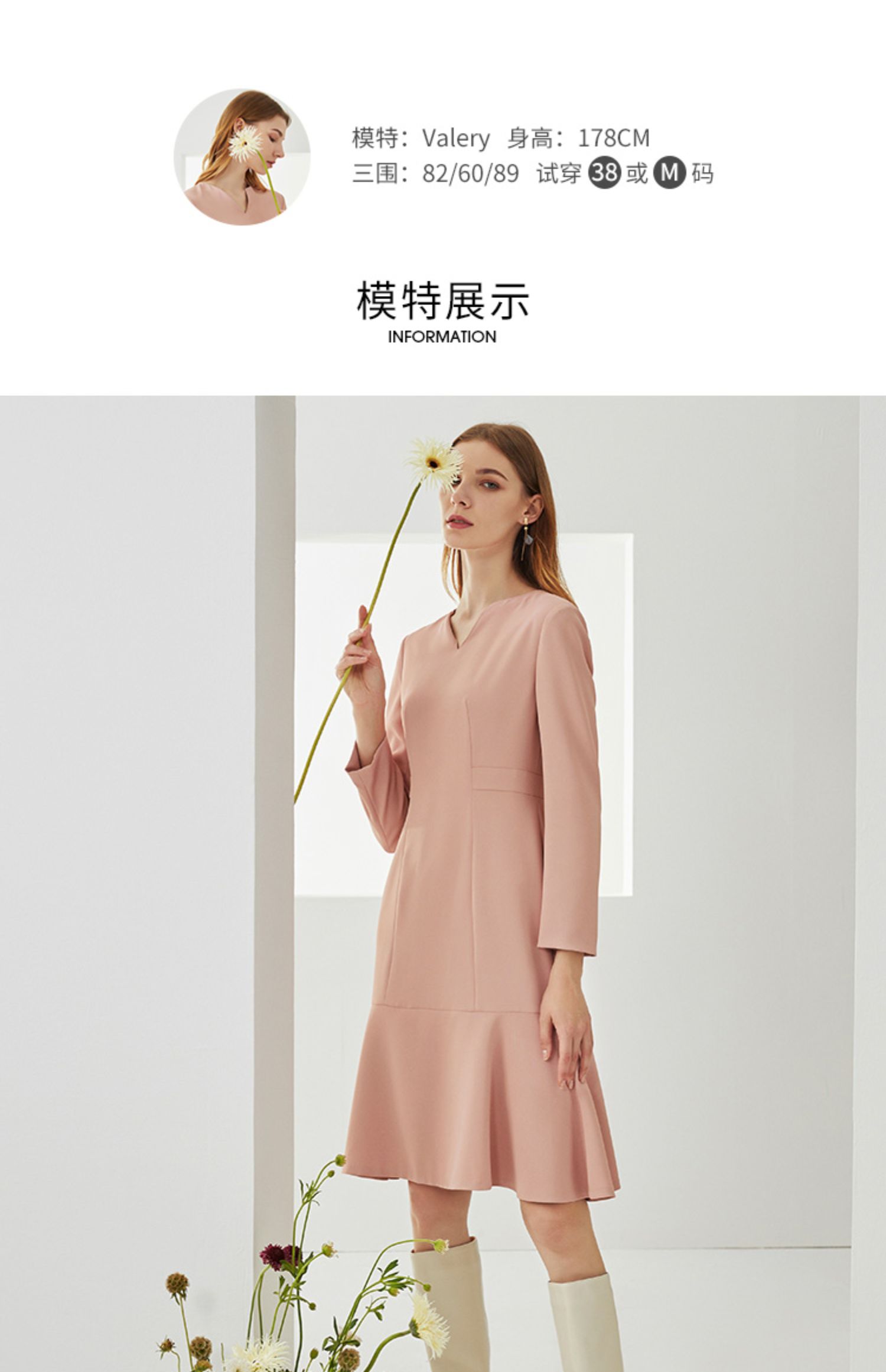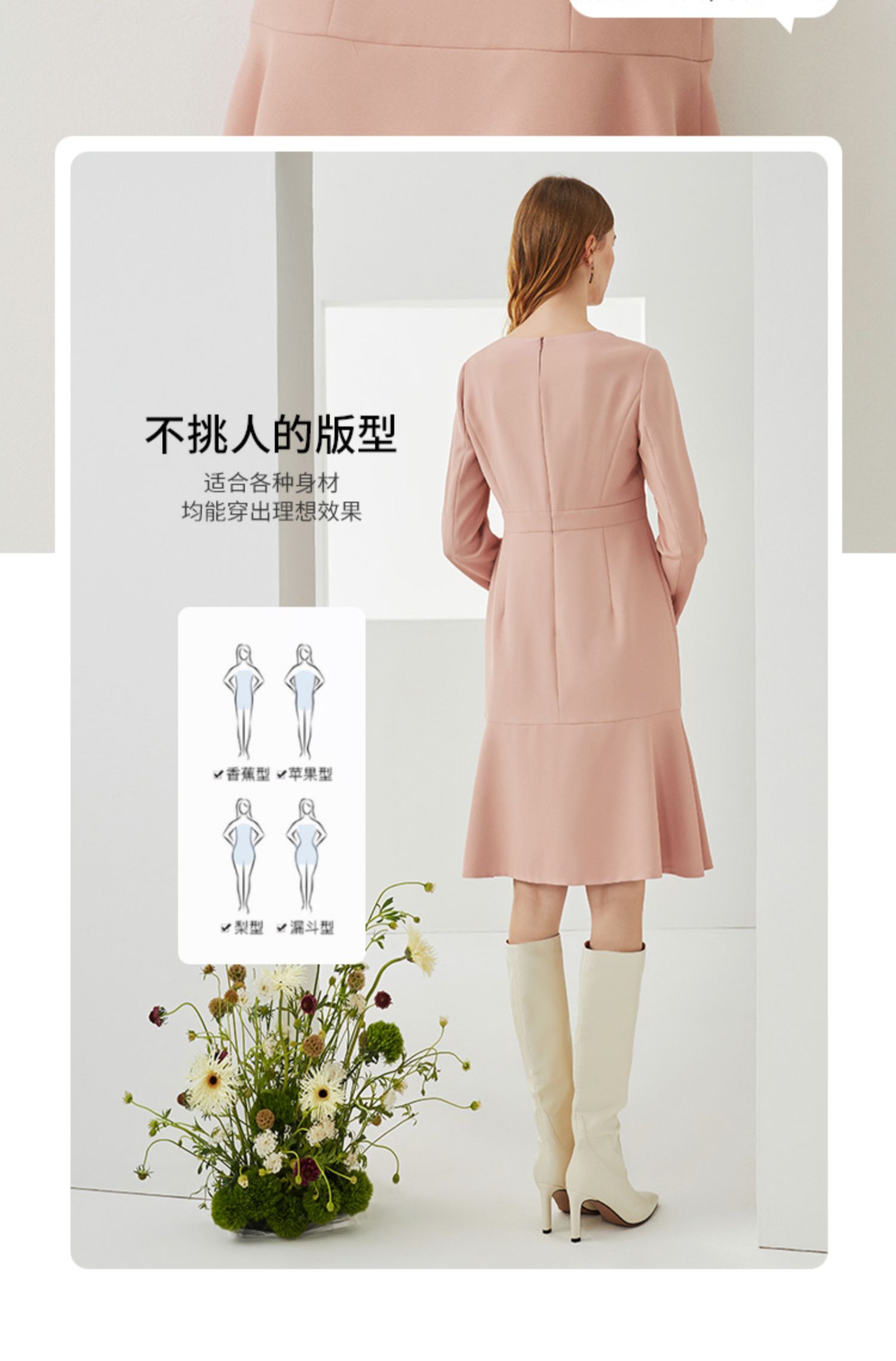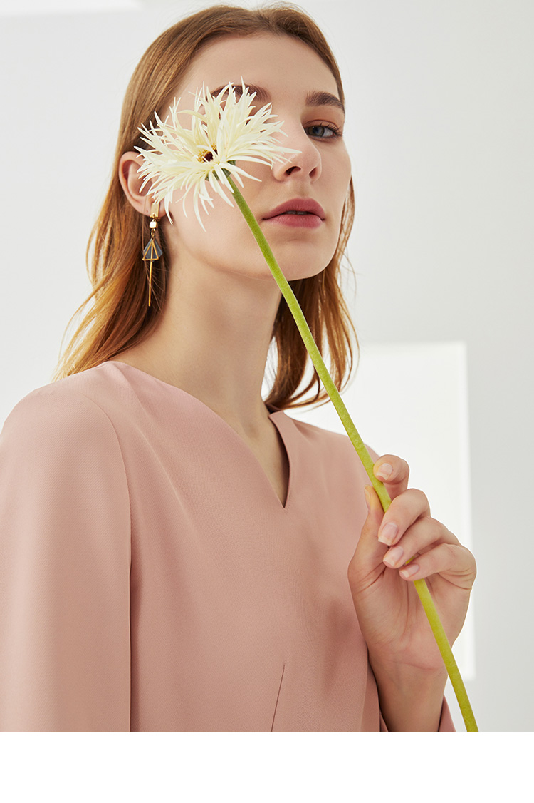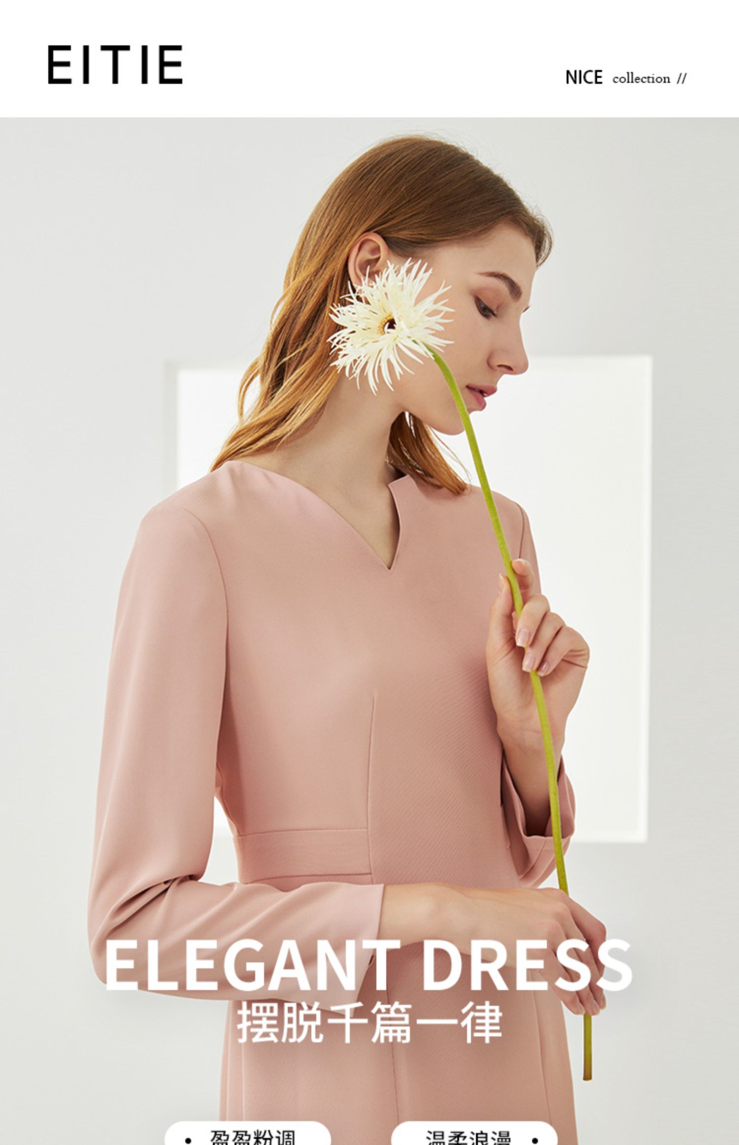 EITIE爱特爱秋季新款时尚洋气V领显瘦修身包臀A字长袖连衣裙C2107822