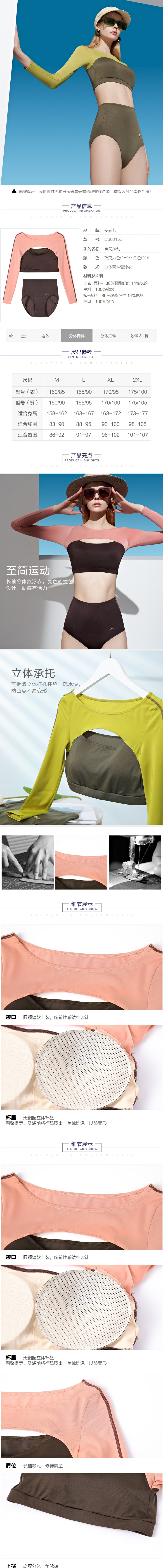 安莉芳撞色长袖三角分体泳衣女士性感沙滩泳装两件套ES00152