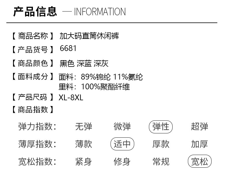 【DSF】大依优型大码男装春秋直筒休闲裤百搭商务弹力松紧腰长裤弹力
