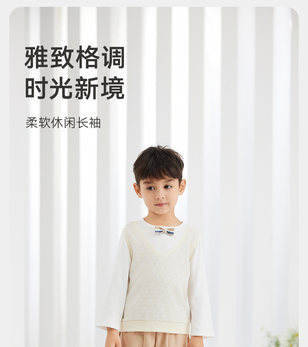 【商场同款】英氏经典复古小绅士男宝宝衣服春季假两件T恤