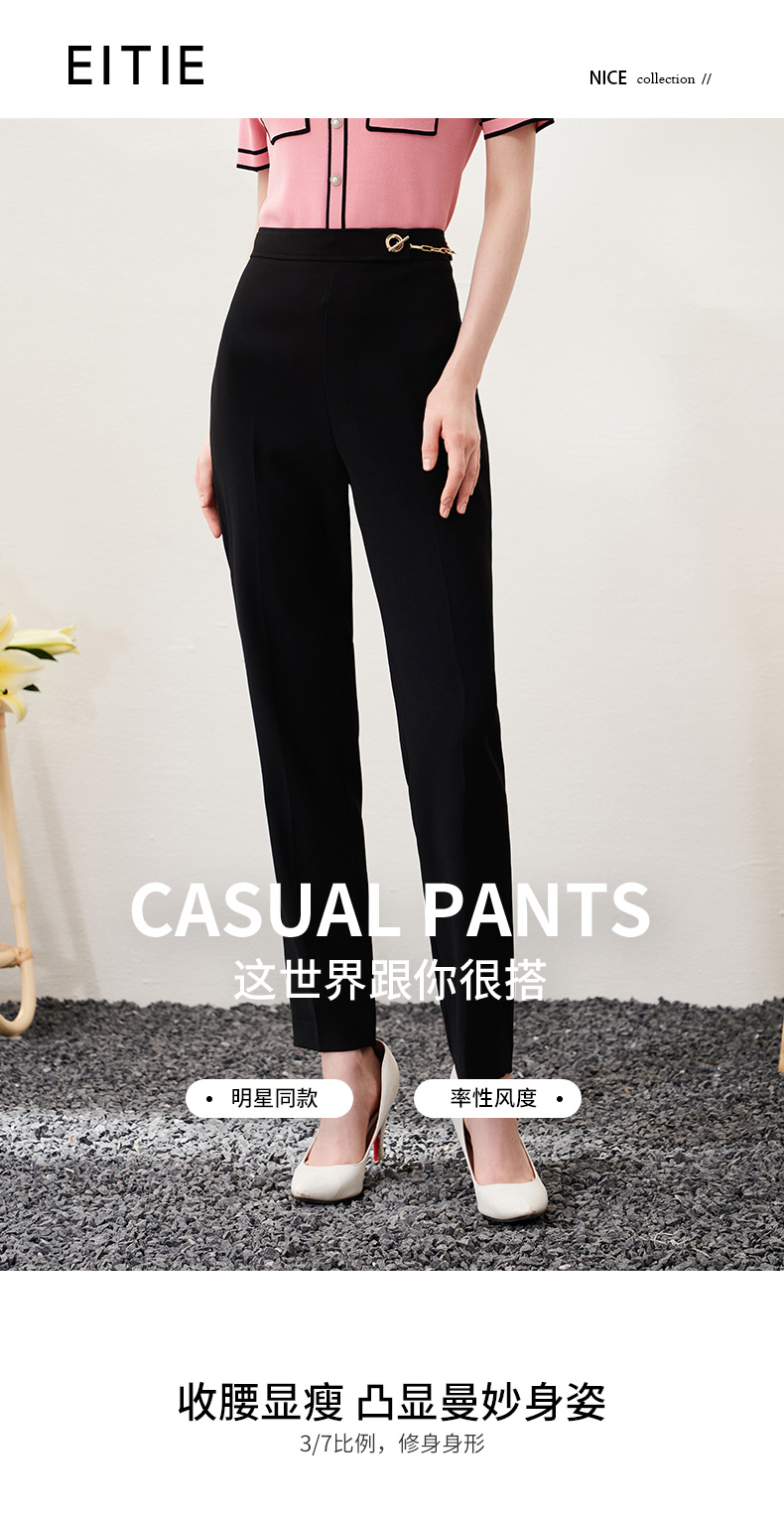 EITIE爱特爱春季新款通勤百搭高腰显瘦职业裤子6905601