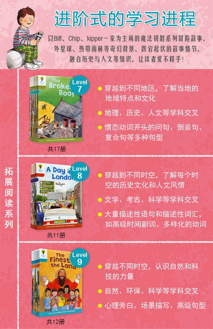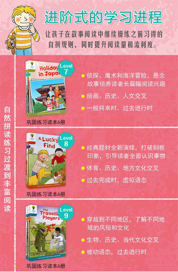 总之,根据牛津的分级体系,每个部分的内容都是层层递进,让听说读写能力全面逐步进阶,孩子阅读技巧和自信心也会相应提升。