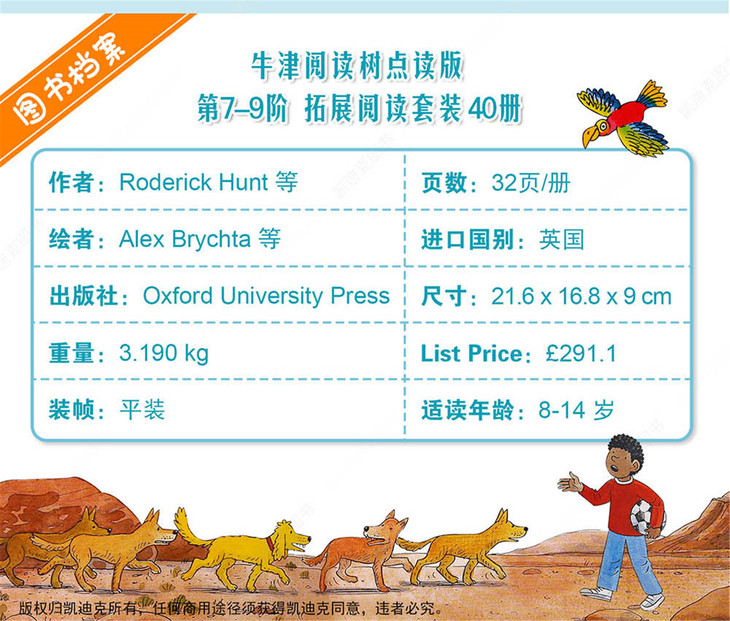 它是英国家喻户晓的英语母语学习材料,在英国目前有超过八成学校选用,被誉为“英国zui受欢迎的阅读教材”;同时,全球有133个国家用它作为外语学习教材,国内很多国际学校在用。它在国内的老师和家长中也深入人心,对于每一个学英语的孩子来说,几乎是必备的材料。