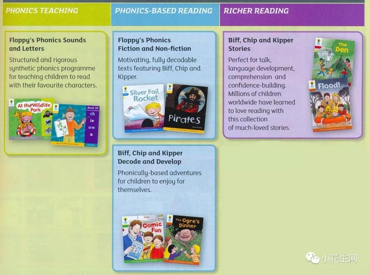 所以你会看到,在《牛津树》第1到第9阶,同一个级别下两类读物同时存在:Phonics Readers (拼读读物)+ Banded Readers (分级读物),同步匹配!这样才能实现阅读能力的全面提升(能读、能拼、能理解)。