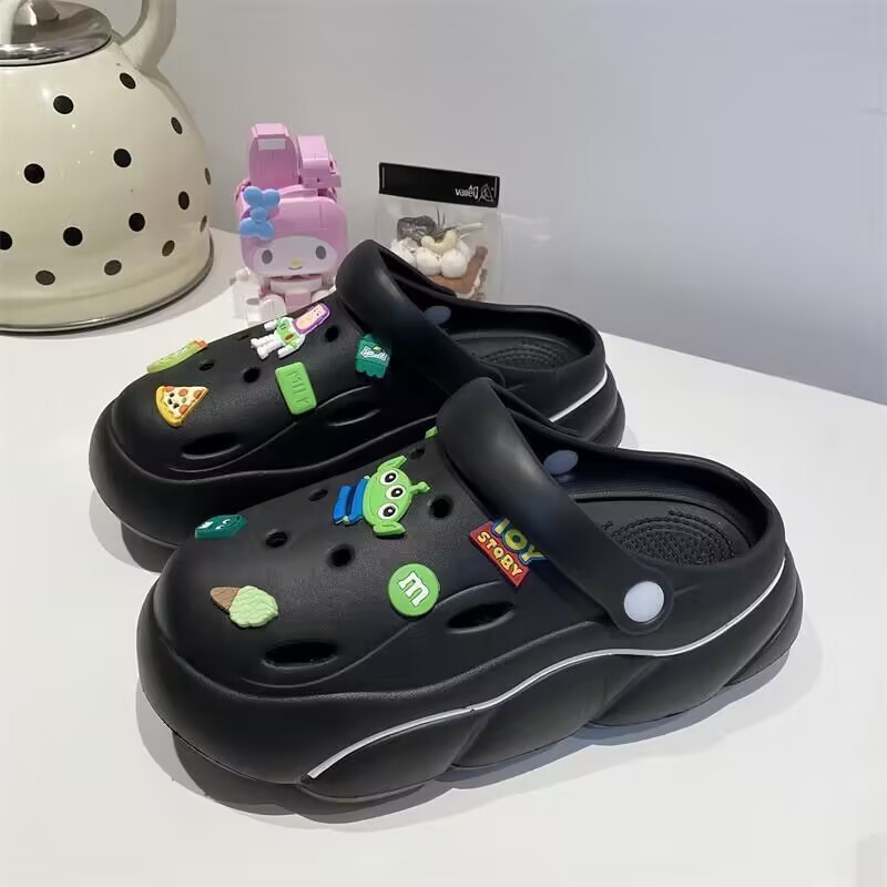【ins网红百搭洞洞鞋~一年四季洞洞鞋还是稳坐正宫!】2024新款小红书爆款网红洞洞鞋 夏季外穿可爱卡通 厚底防滑包头拖鞋-QQ