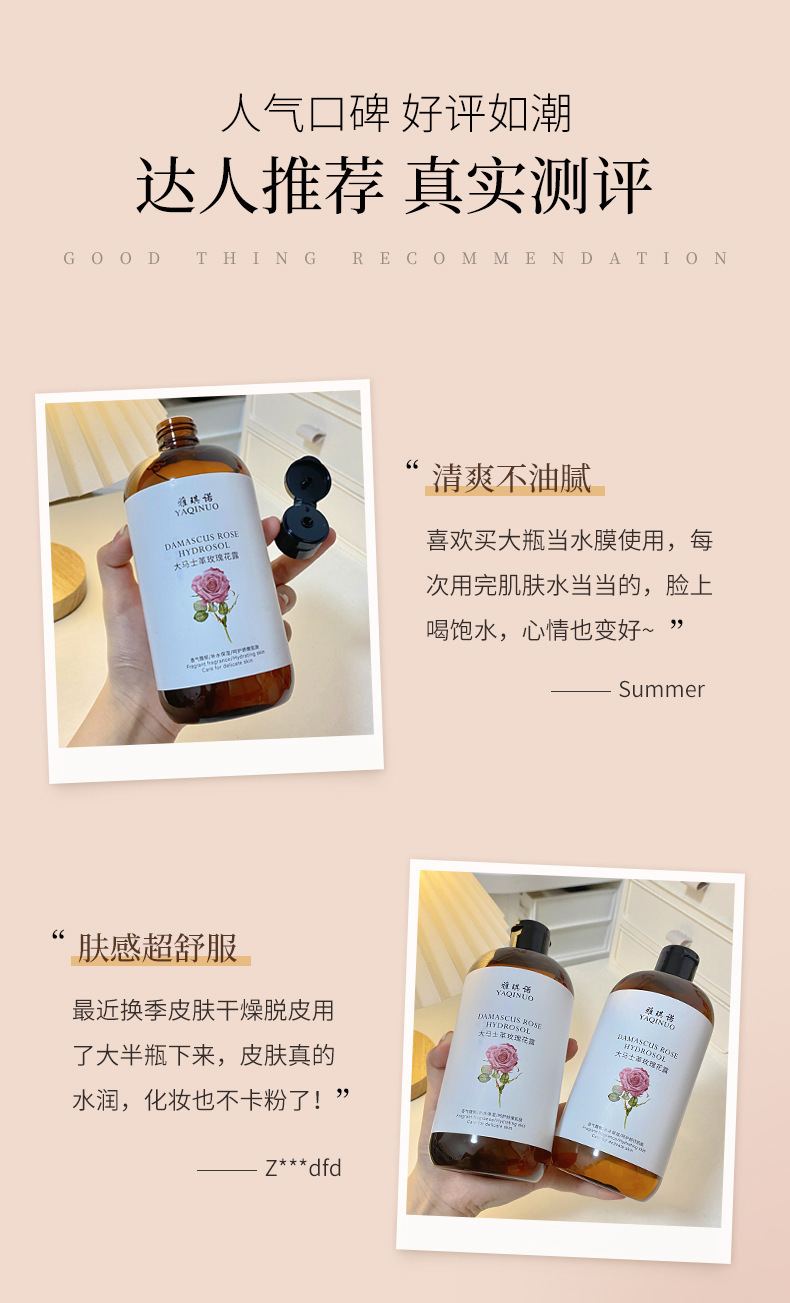 【深入补水!水润肌底】雅琪诺大马士革玫瑰花纯露补水保湿爽肤水喷雾疗湿敷。xa