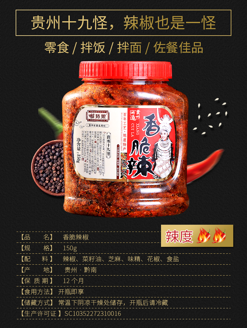 苗姑娘 香脆辣 小吃零食辣椒干150g