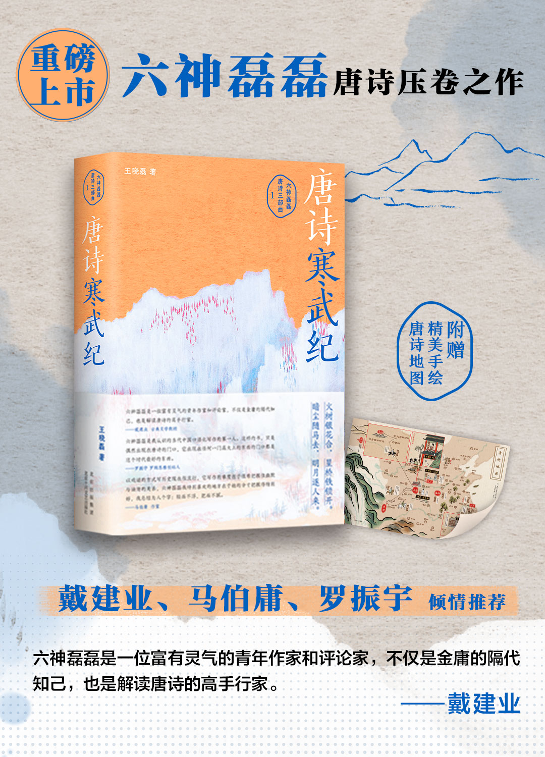 《唐诗寒武纪》是六神磊磊唐诗三部曲第一部。从六朝到初唐,从谢灵运走出乌衣巷、开始少年游的405年,到天才涌现、点亮星河的初唐之末,时间跨度三百多年。作者打通时光隧道,走进大唐的诗歌江湖,围绕这一时期的重要诗人,如王勃、杨炯、卢照邻、骆宾王、宋之问、杜审言、上官婉儿、张若虚、陈子昂等的独特际遇,讲述了在诗歌高峰——以李白、杜甫为代表的盛唐诗出现之前,诗坛怎样冲出沉闷乏味,就像生命在寒武纪爆发一样,气象焕然一新。