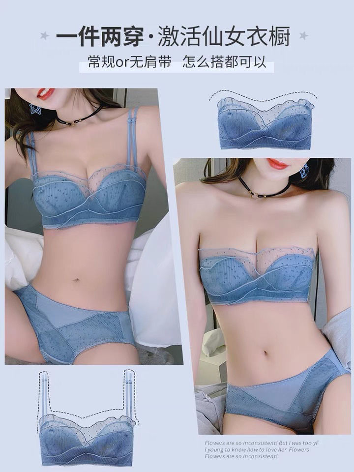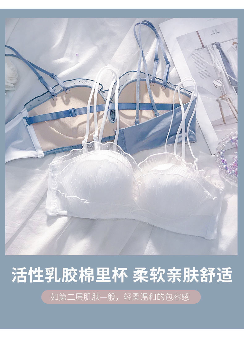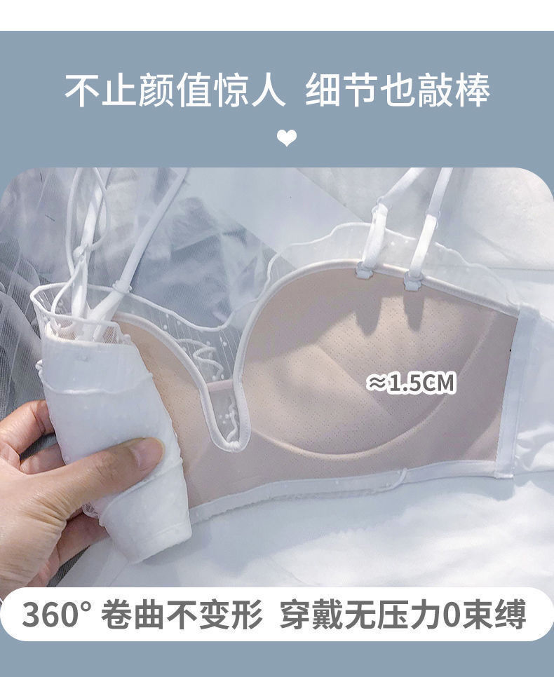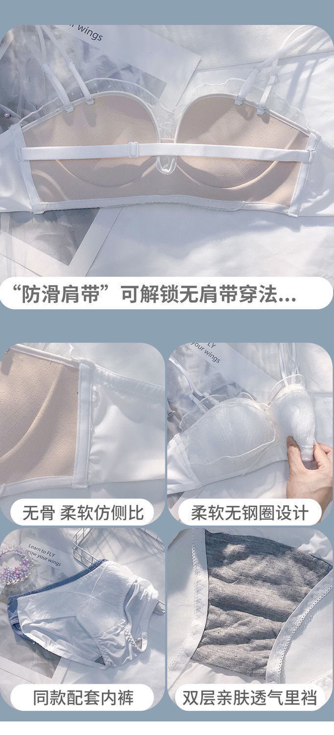 黛唯梵无肩带内衣女小胸聚拢防滑无钢圈平胸女士2022文胸罩套装夏季薄款