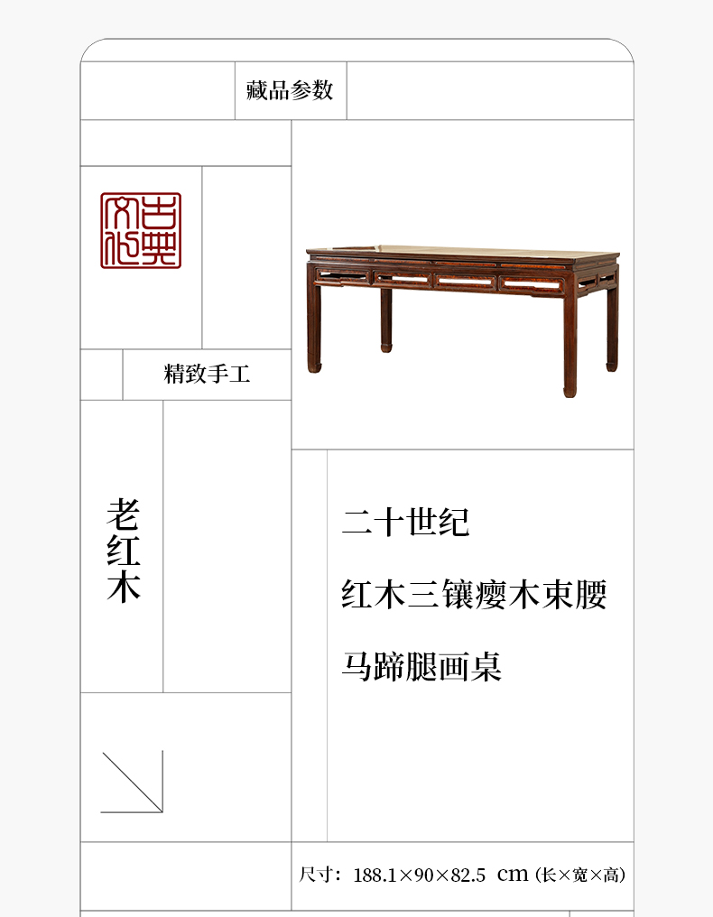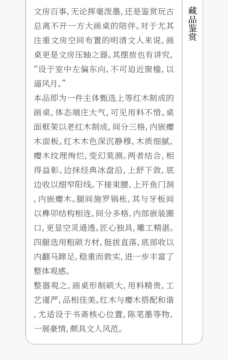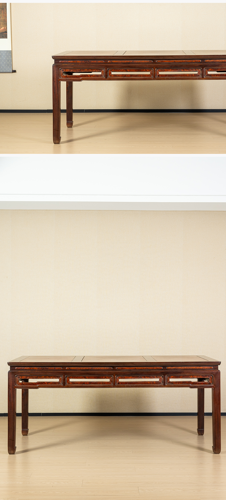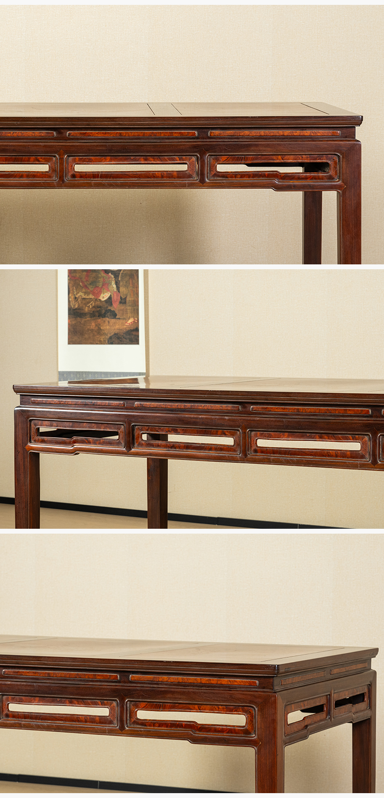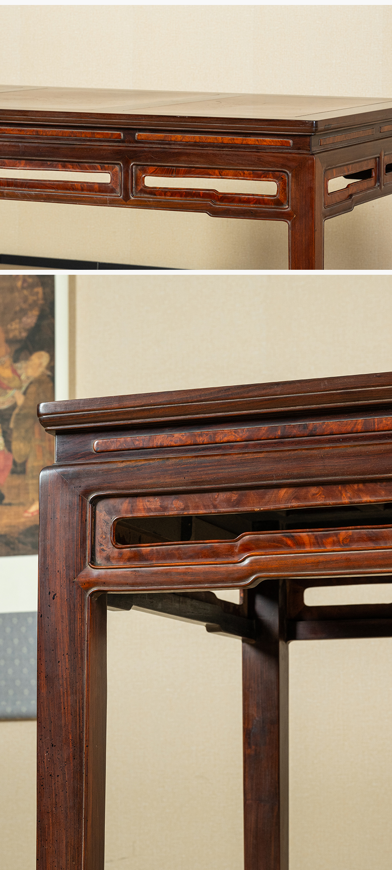 二十世纪 红木三镶瘿木束腰马蹄腿画桌