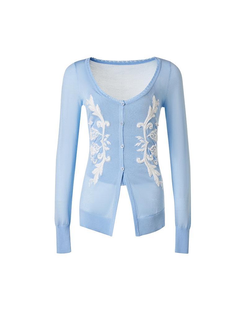 MAXRIENY【商场同款】2025春季新款设计感刺绣提花修身针织衫上衣(货号:MC85SW056)