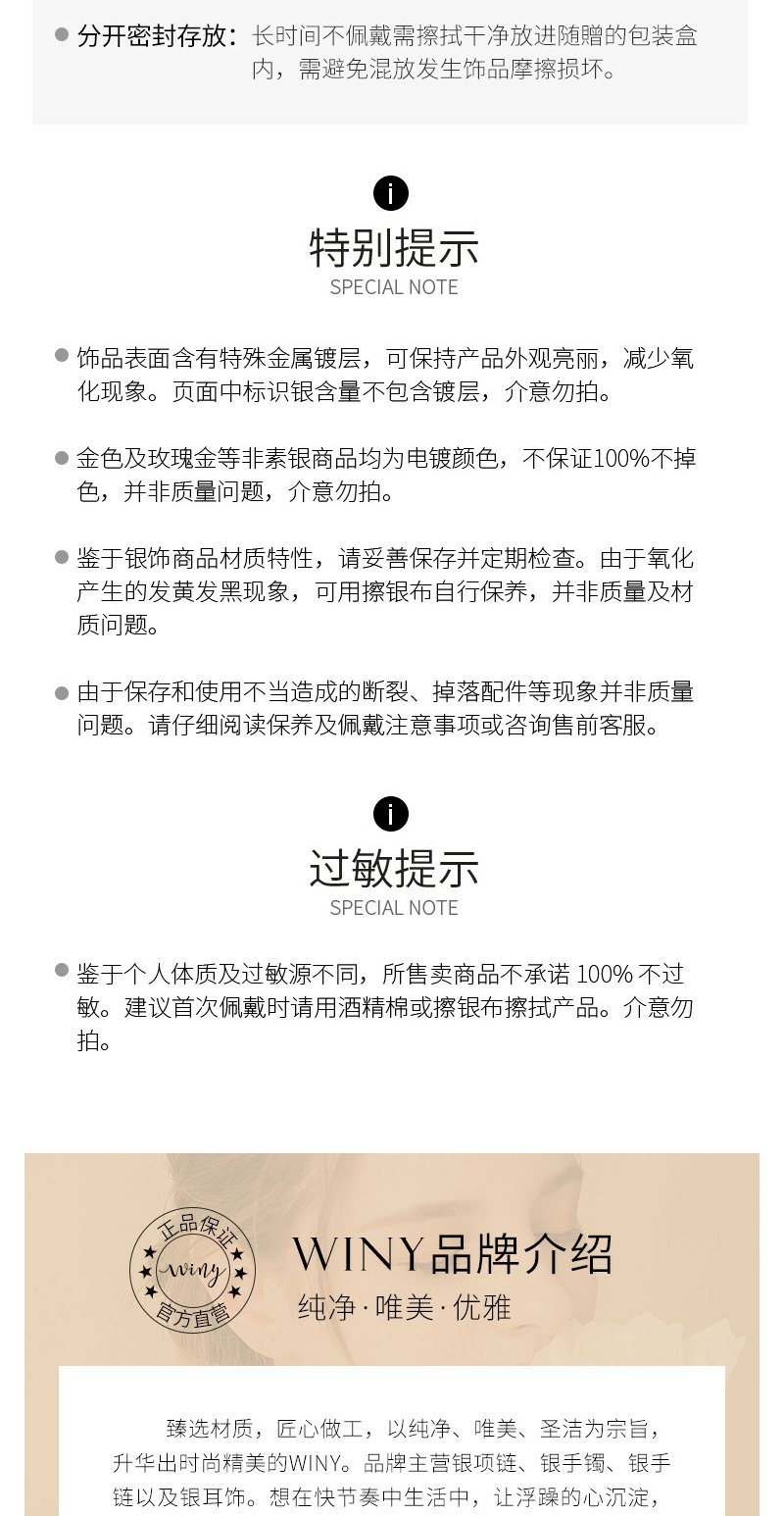 唯一winy是国内网络饰品品牌的先行者。 创立初衷源于对亲情、爱情、友情的珍惜唯一,用心做好每一件饰品为您守护人生中如珠宝般珍贵动人的那些时刻那怕岁月流转,唯爱始终如一。