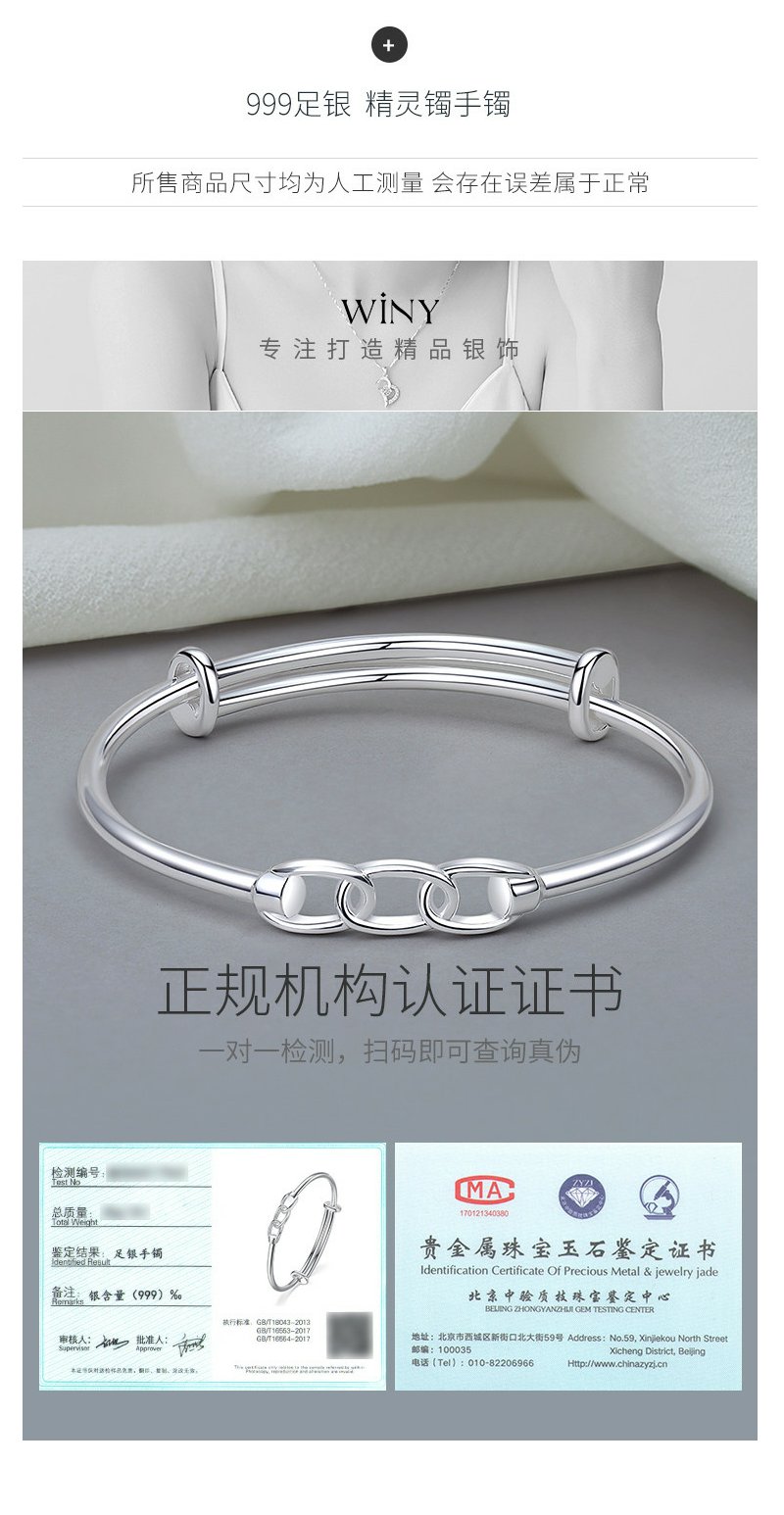 Winy999足银精灵镯手镯送女友闺蜜节日生日礼物