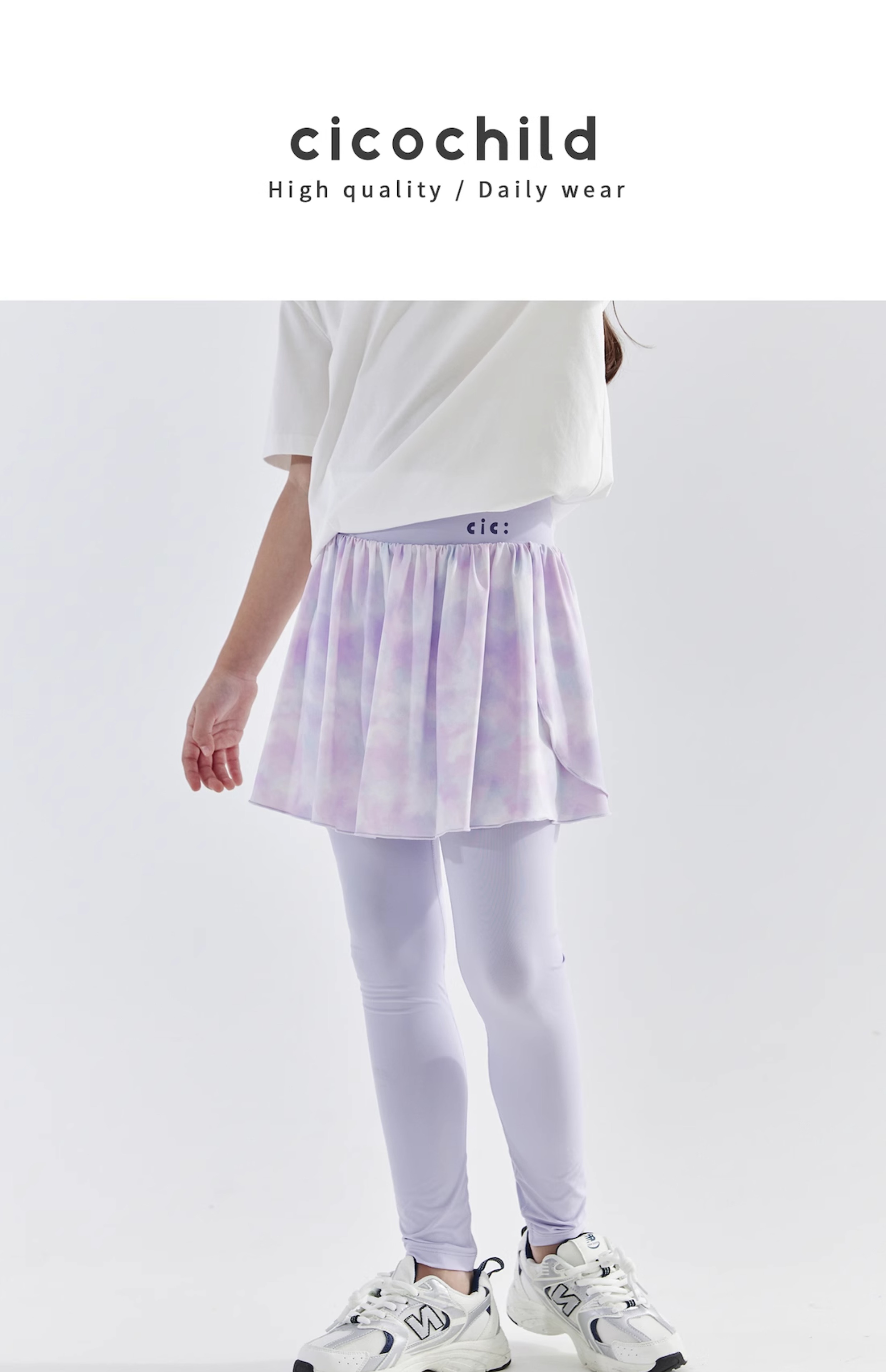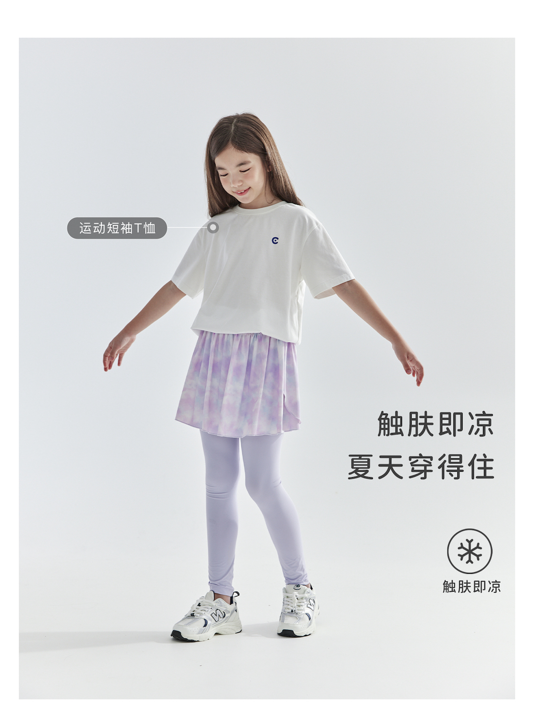 cicochild25年夏季新款中大女童晕染瑜伽裙裤粉紫凉感防晒亲子装