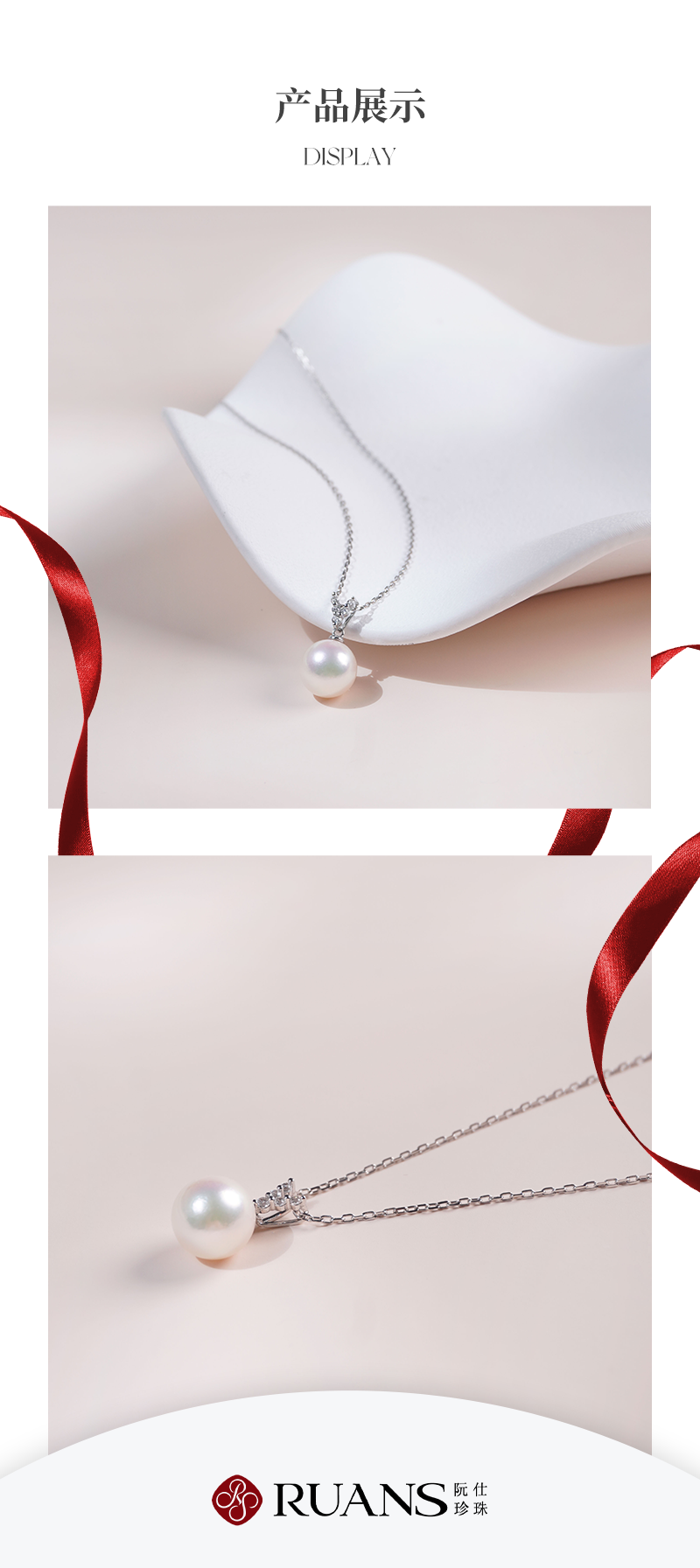 【限量20条】阮仕珍珠 valentine系列G18K金日本akoya珍珠吊坠 9-9.5mm 正圆 微瑕 极强光(赠银链)