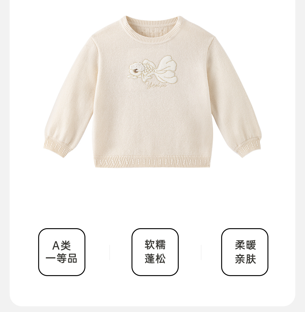【高定系列】英氏儿童套头衫秋冬女童羊毛衫保暖上衣新款毛衣