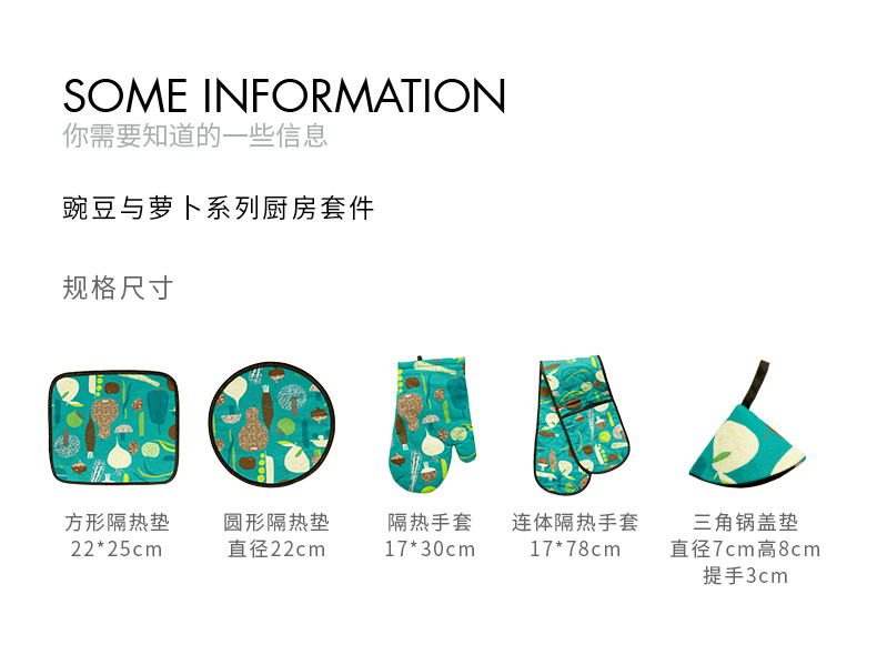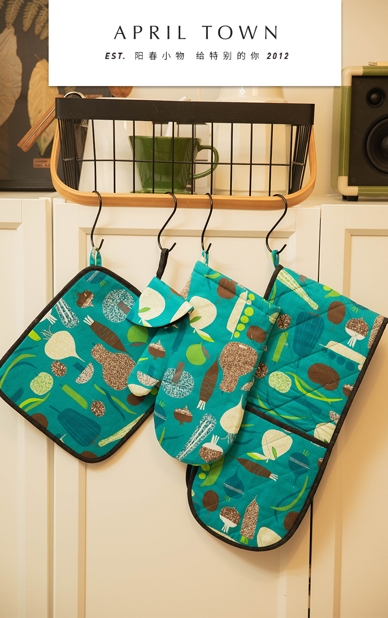 豌豆与萝卜系列厨房套件纯棉布艺隔热手套隔热垫