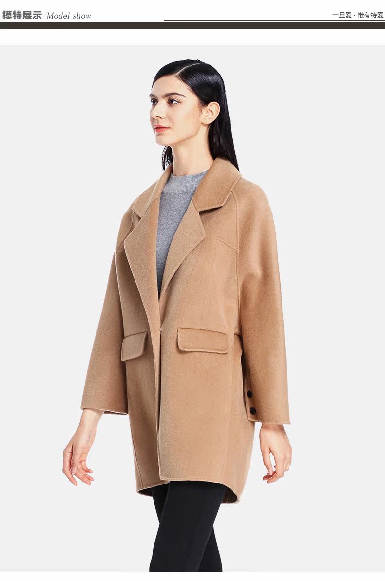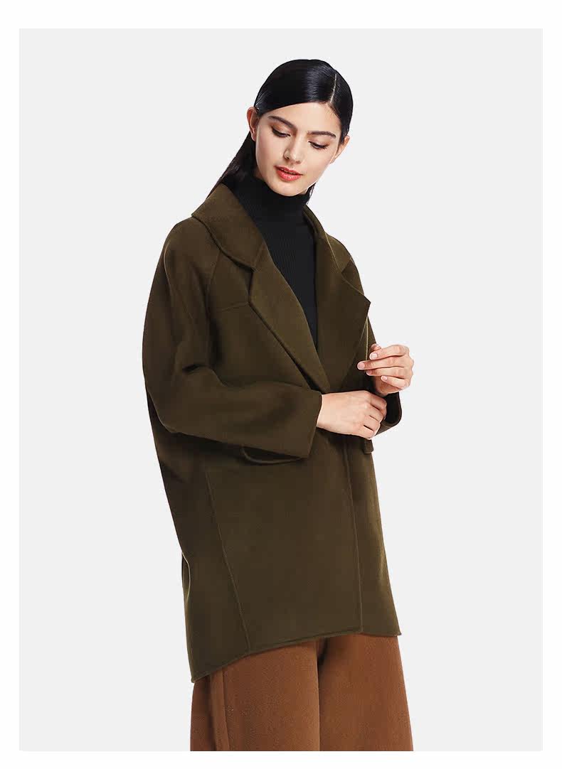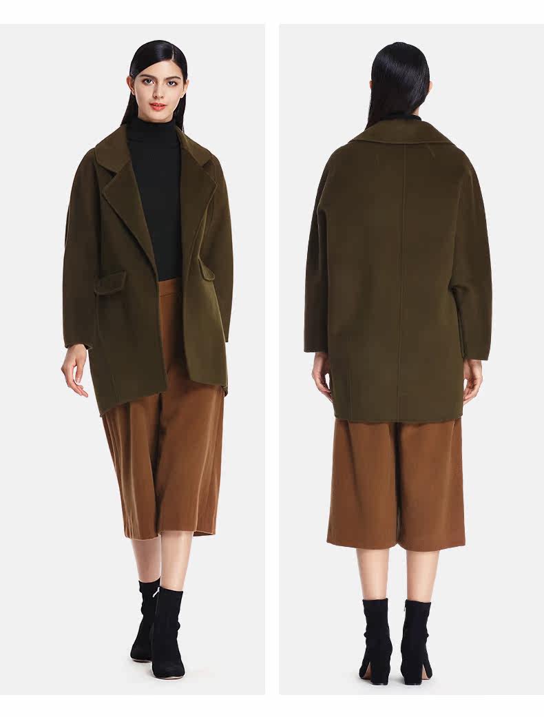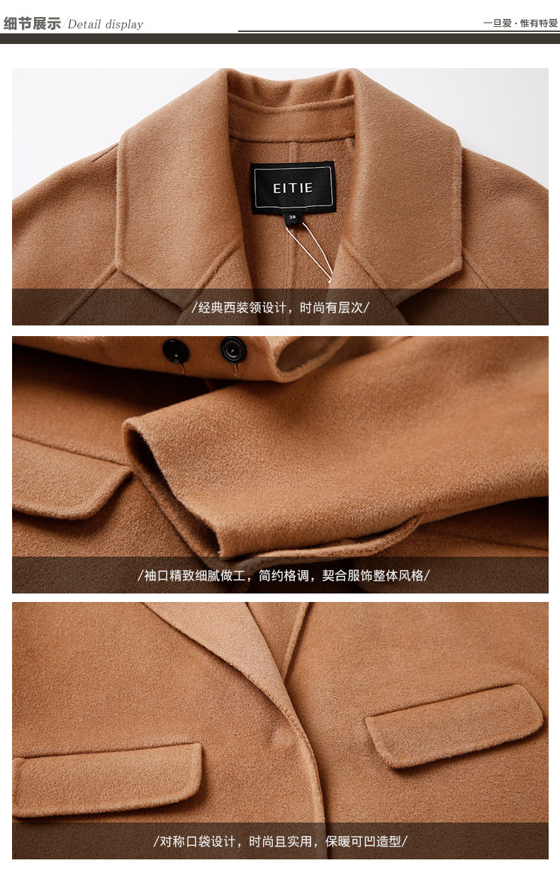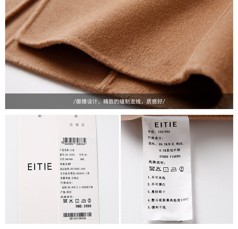 EITIE爱特爱女装秋冬OL直筒中长款呢子大衣长袖毛呢外套5614313