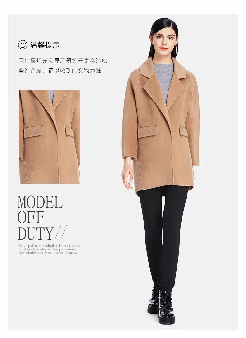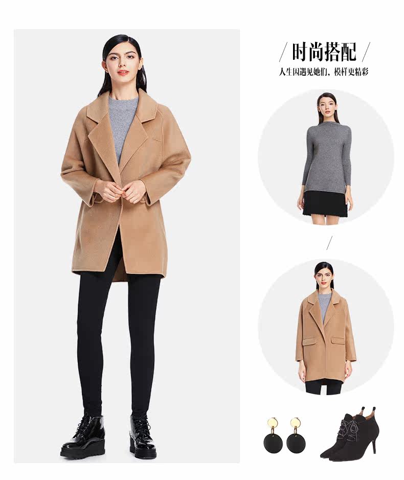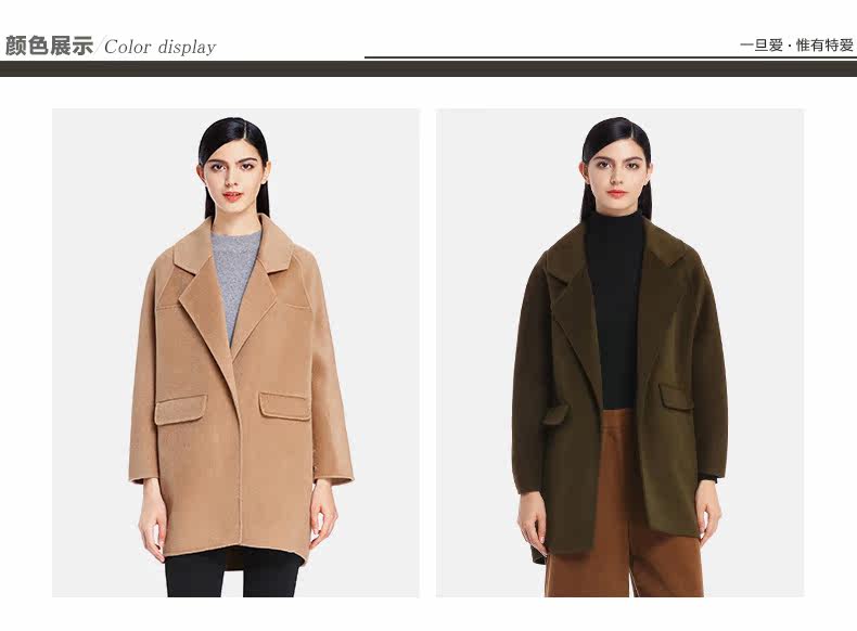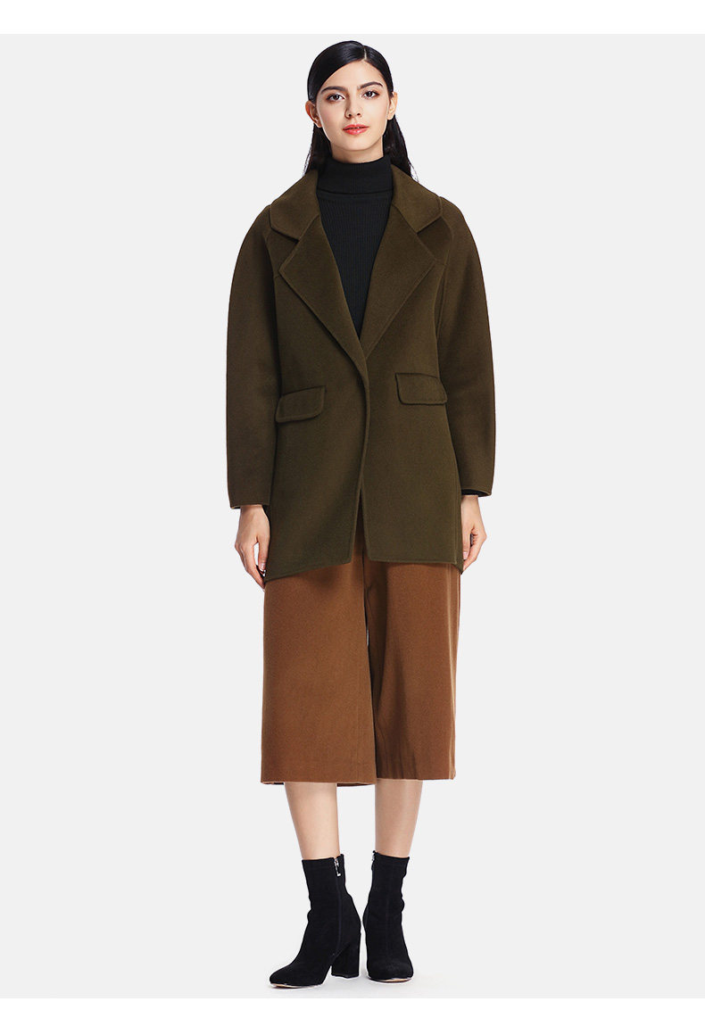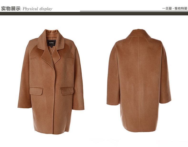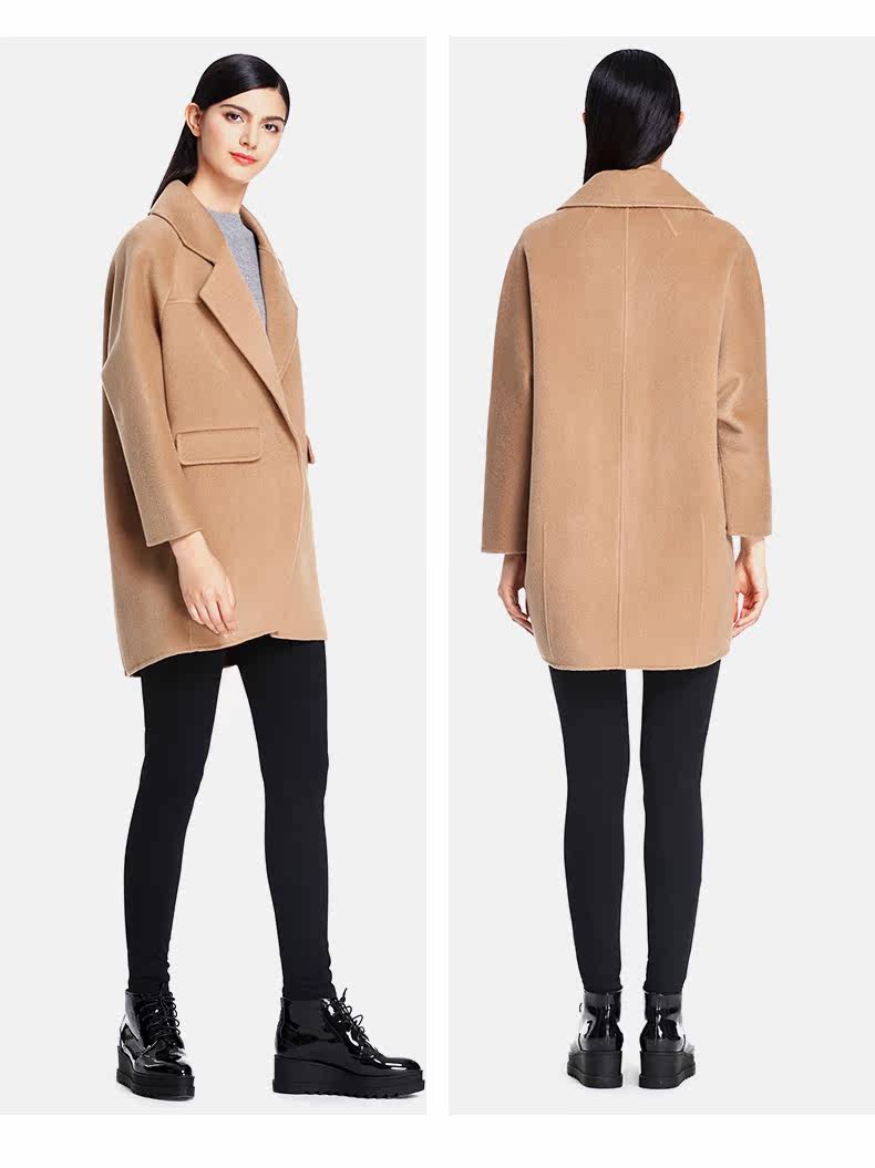 EITIE爱特爱女装秋冬OL直筒中长款呢子大衣长袖毛呢外套5614313