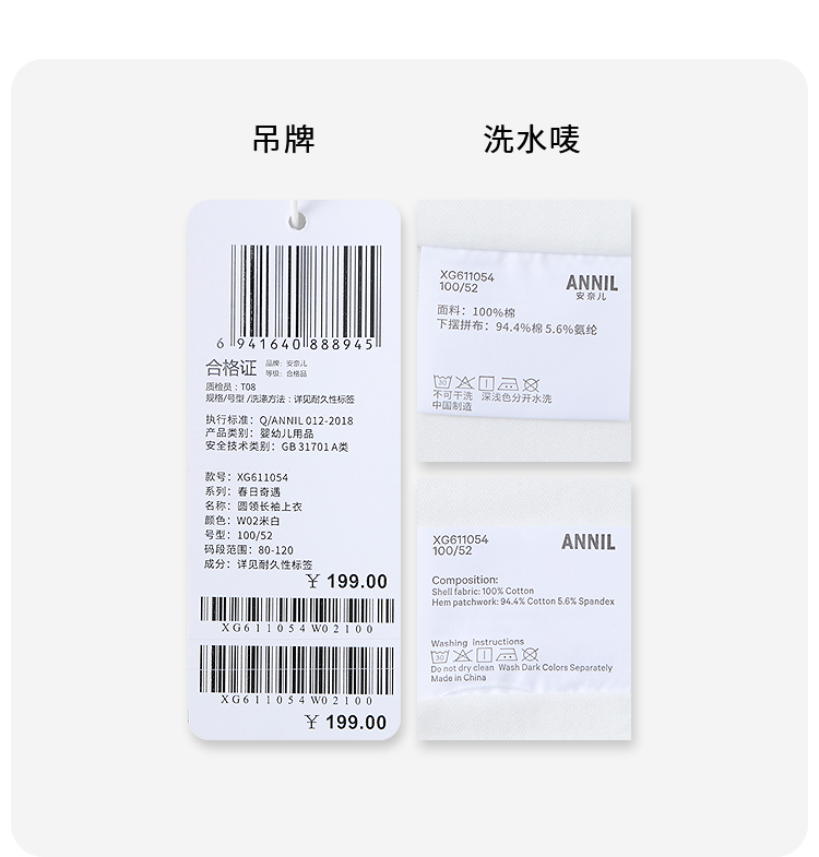 【实体店同款】女童圆领长袖上衣春季新款安奈儿童装XG611054