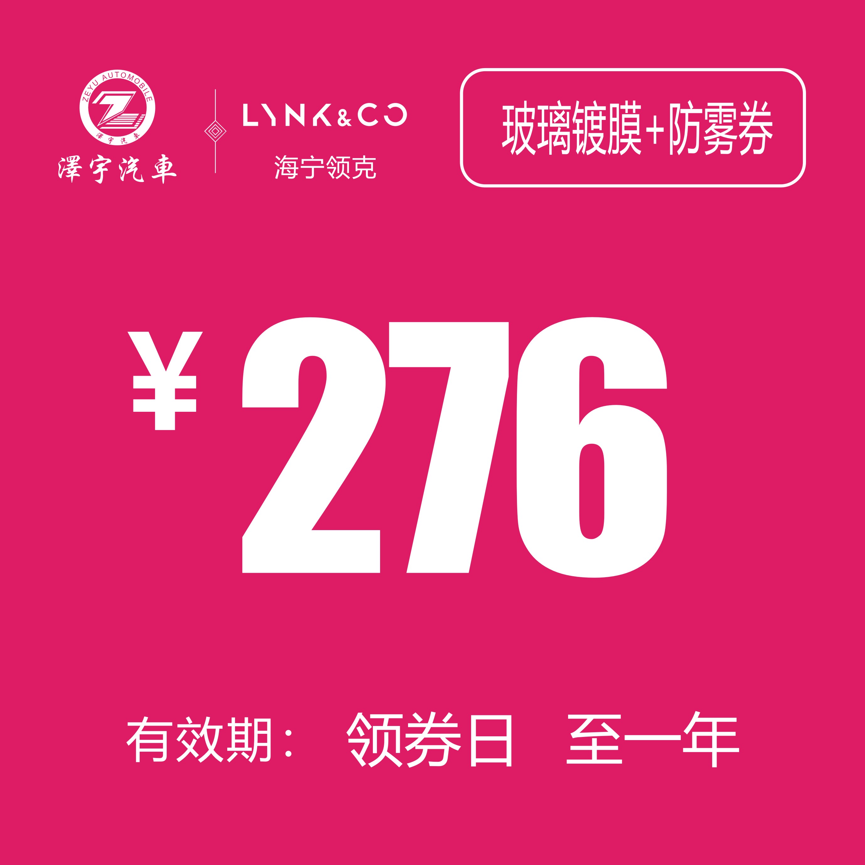 海宁利泽领克 玻璃镀膜+防雾券