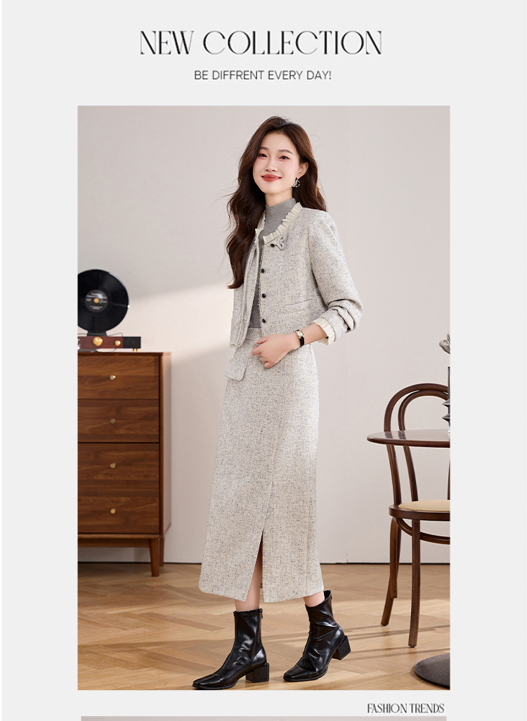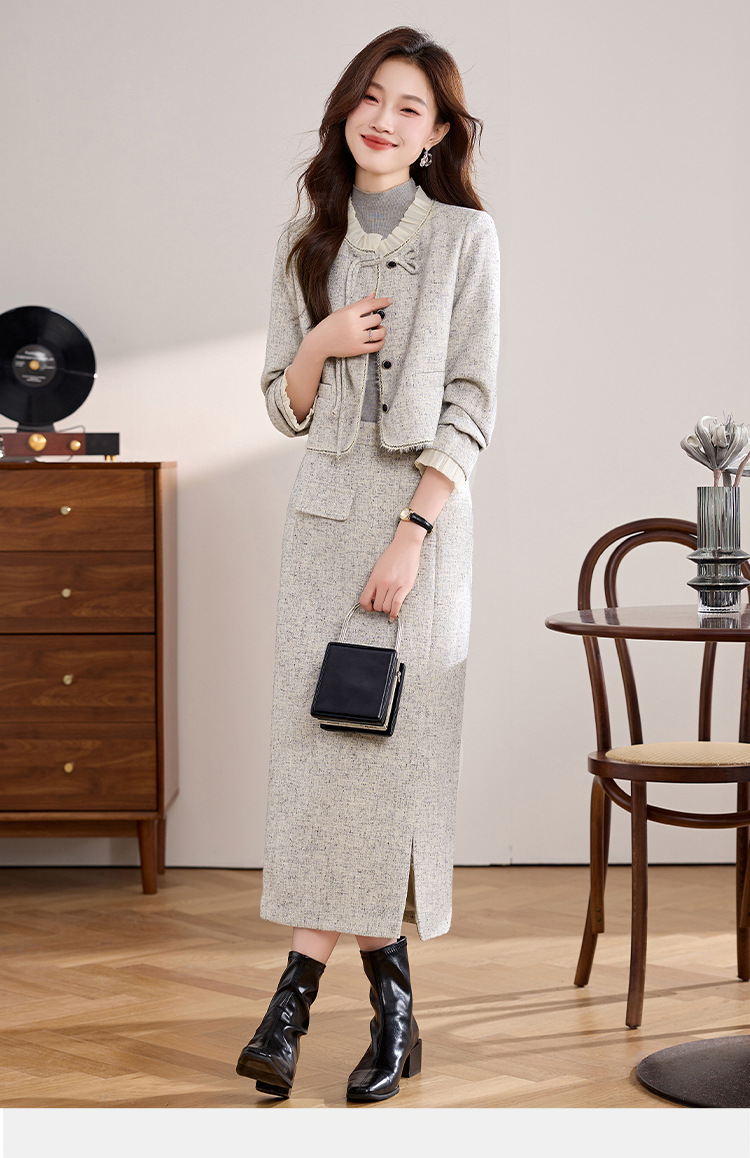 HR LSNY2453法式小香风套装时尚气质减龄高腰显瘦半身裙两件套 商品图4